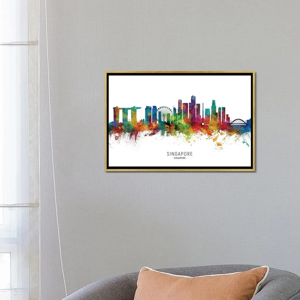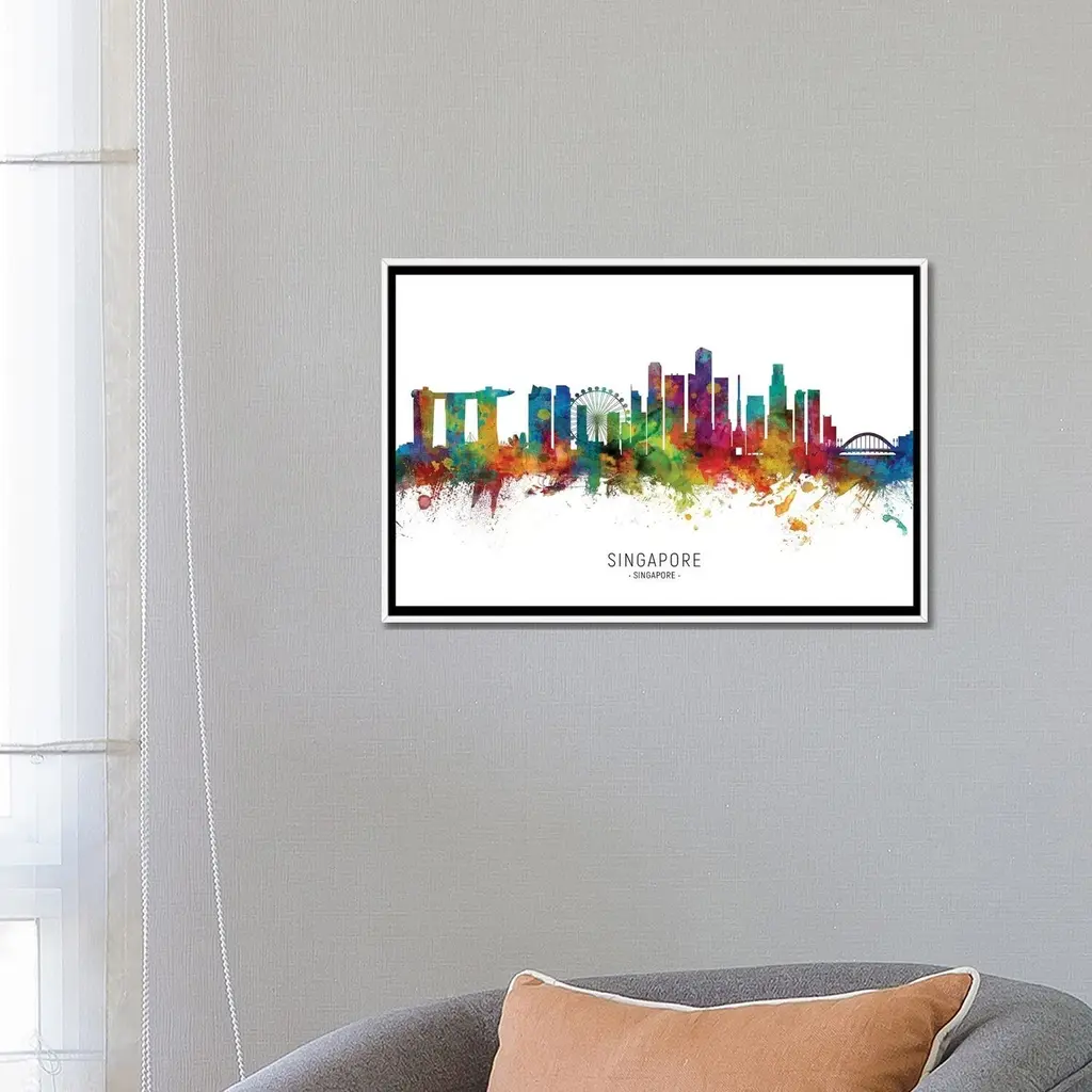 Add a touch of modern elegance to your space with the iCanvas "Singapore Skyline" by Michael Tompsett Framed Canvas Art. Crafted in the USA with artist-grade canvas, this artwork offers the texture, look, and feel of fine-art paintings. The Giclee printing technique ensures fade-resistant archival inks for vibrant colors that will last for decades. Professionally hand-stretched and stapled over pine-wood bars in a Gallery Wrap style, this artwork comes mounted to a 2-inch thick hard wood frame for a sleek and sophisticated look. The "floating" illusion created by the 3/8" space between the art and frame adds a contemporary touch to any room. Elevate your decor with this stunning piece of art!Features: