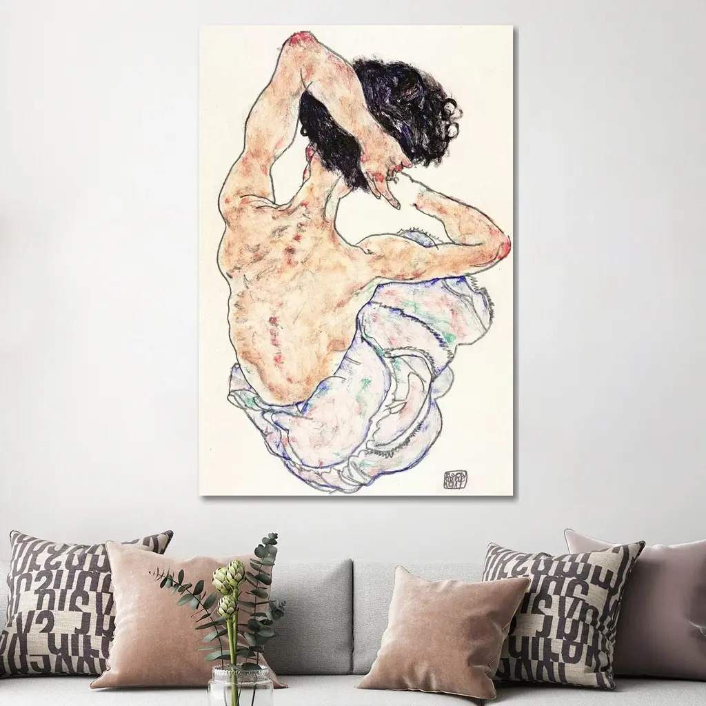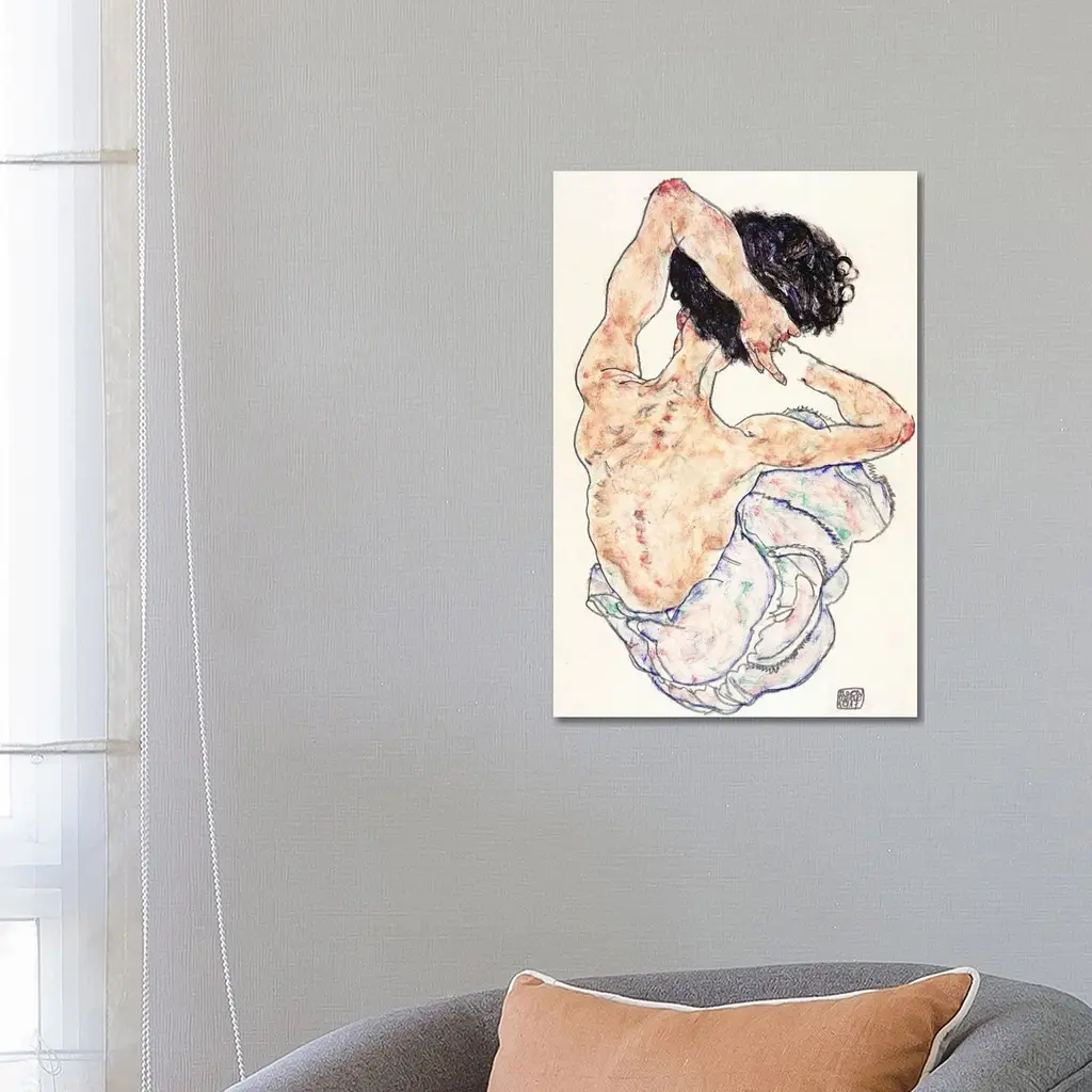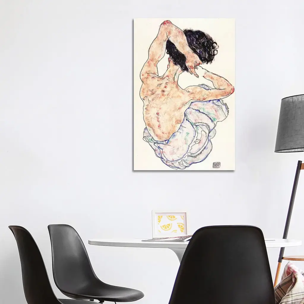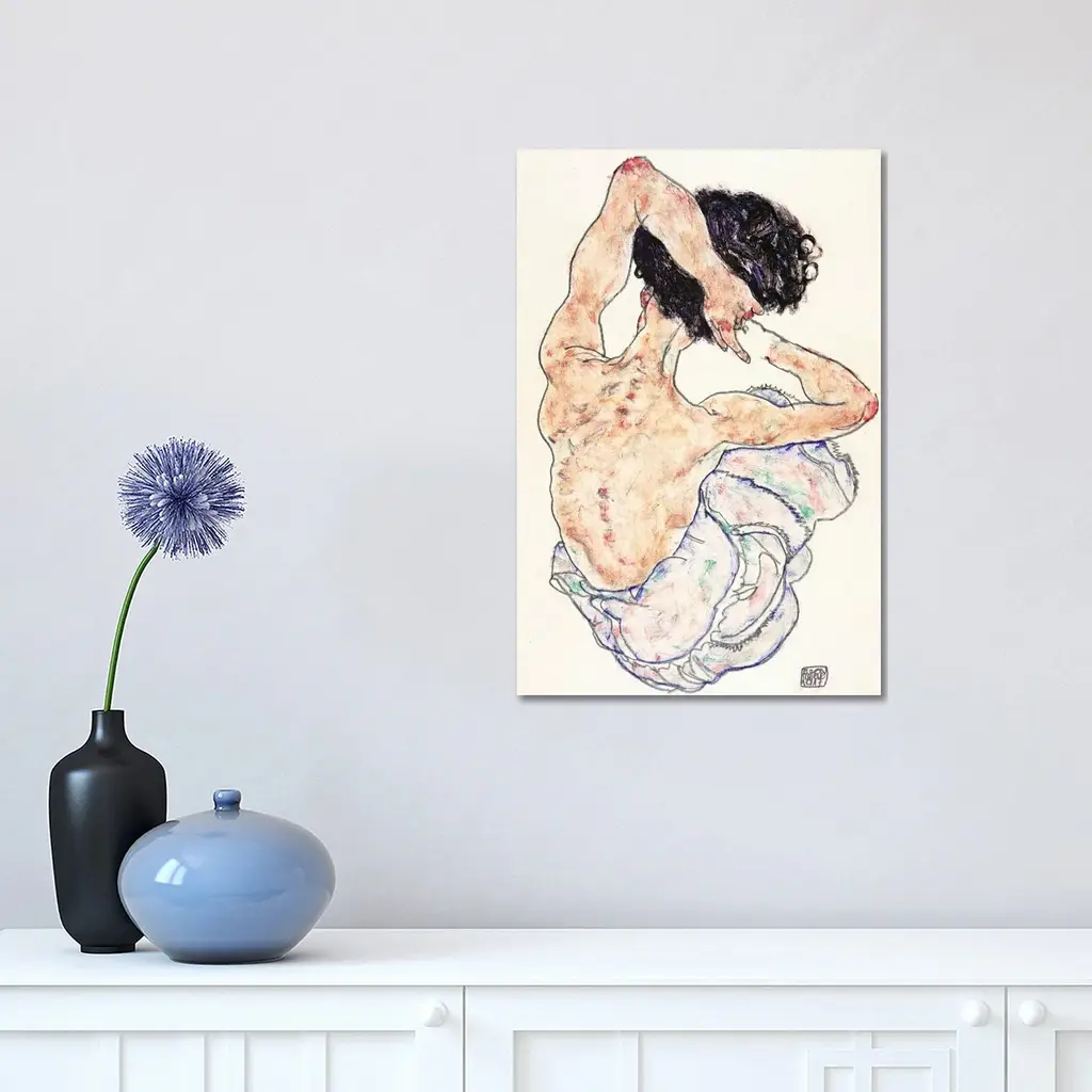 Icanvas "Sitting Back Act" By Egon Schiele Canvas Print - 48x32x1.5