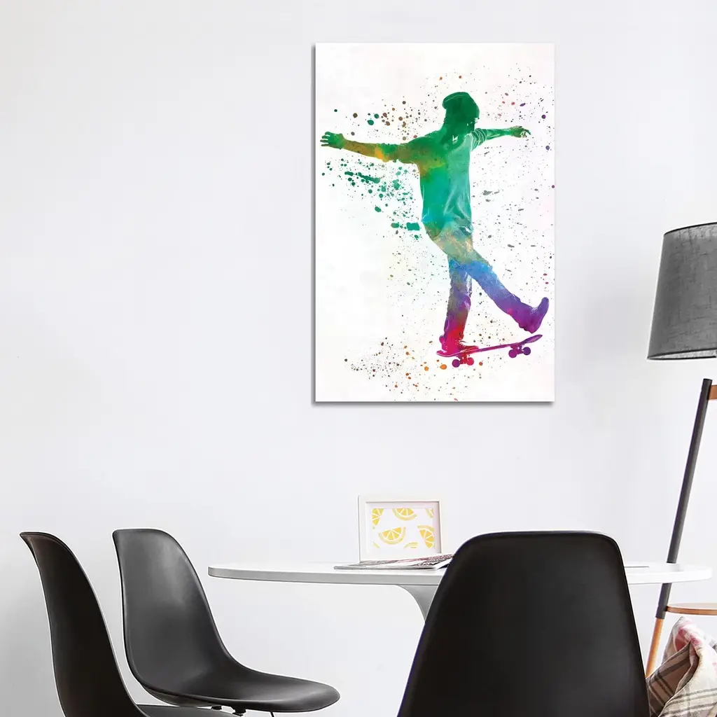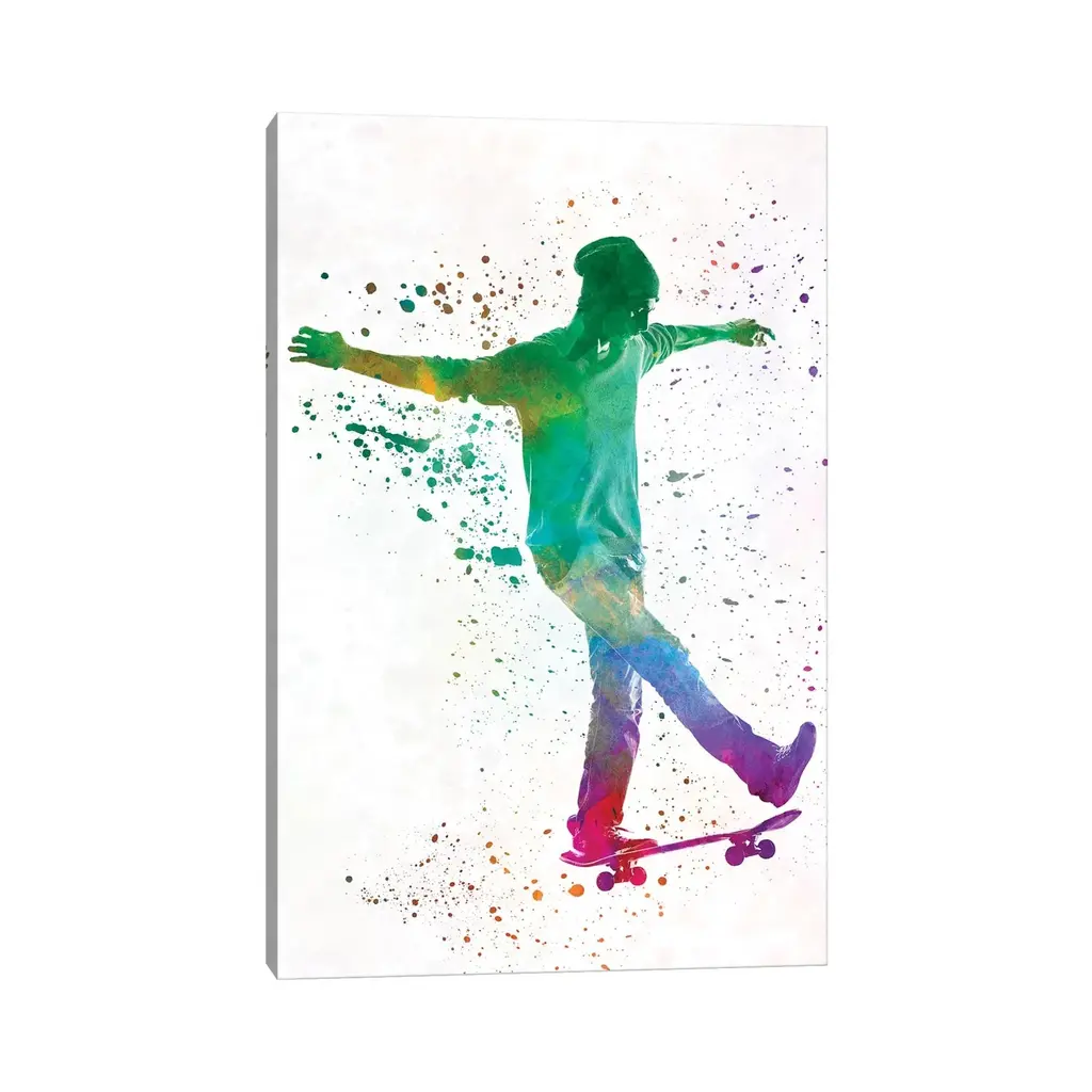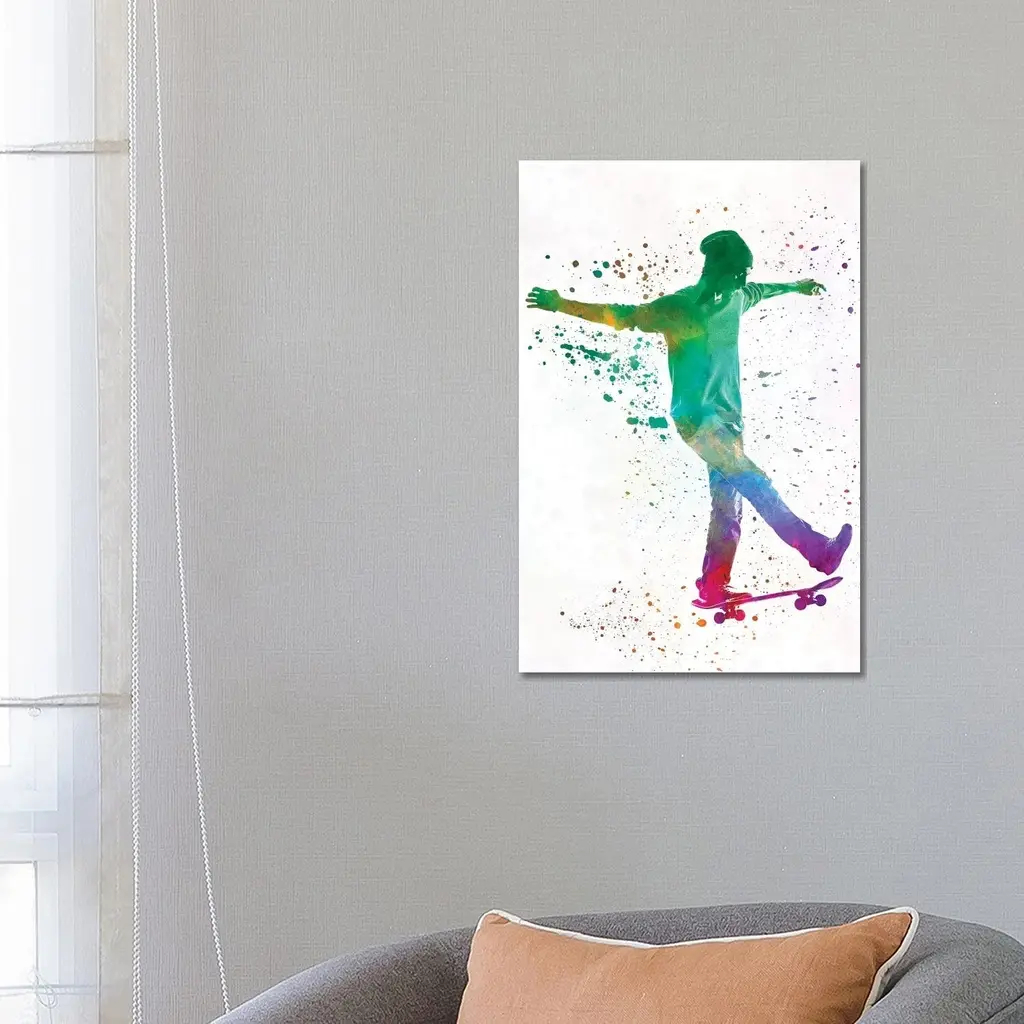 Icanvas "Skateboarder In Watercolor Vii" By Paul Rommer Canvas Print - 26x18x1.5