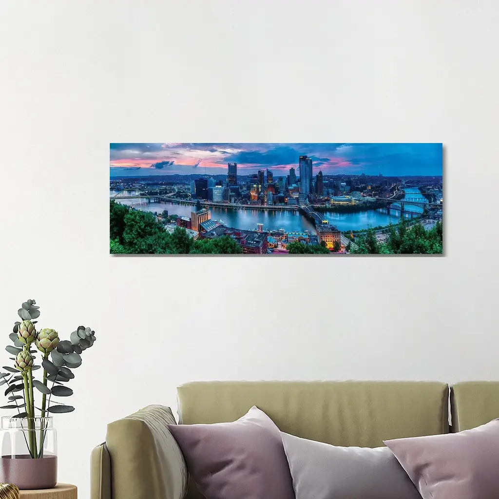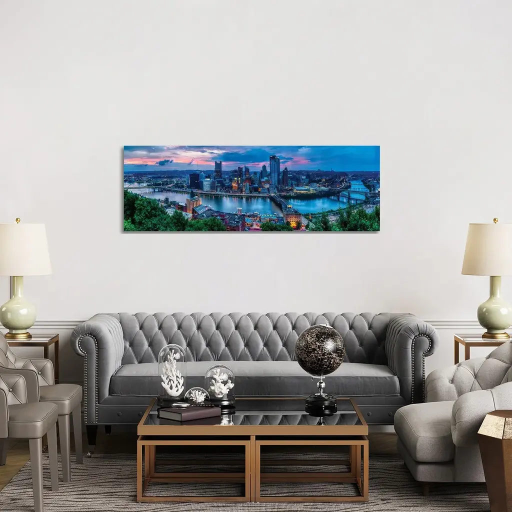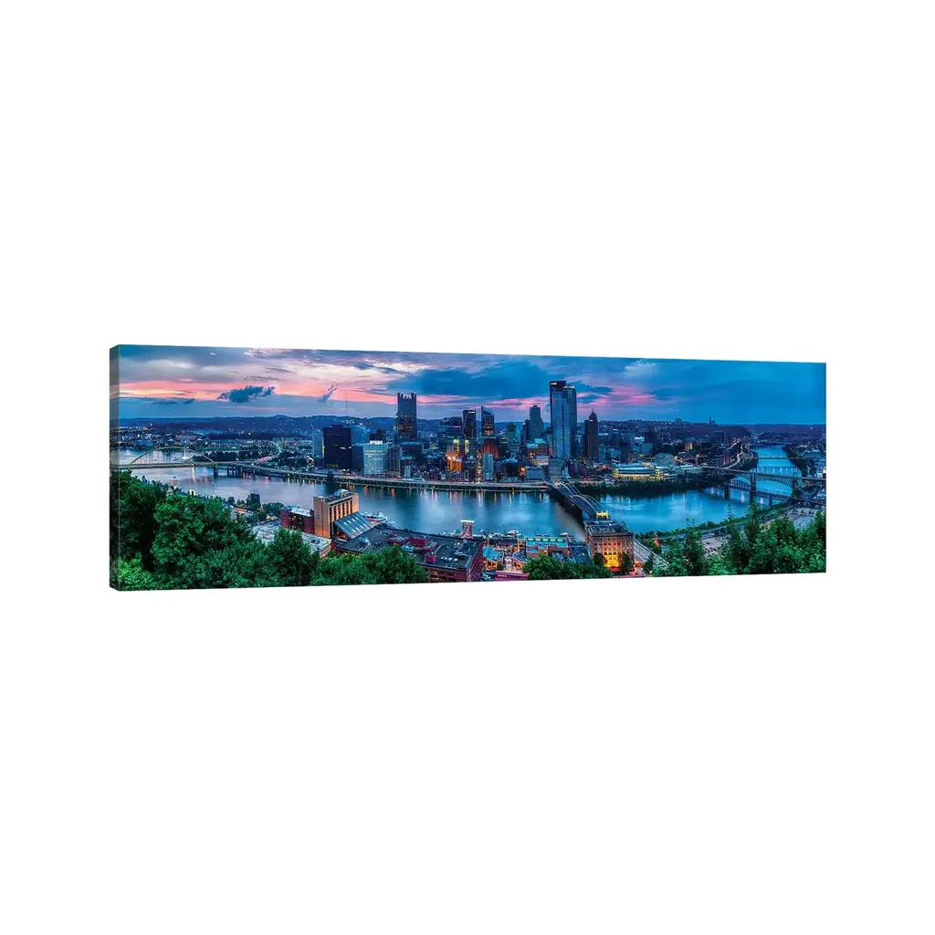 Icanvas "Skyline Panorama Of Pittsburgh Viewed From Mount Washington" By George Oze Canvas Print - 16x48x1.5