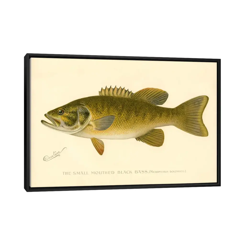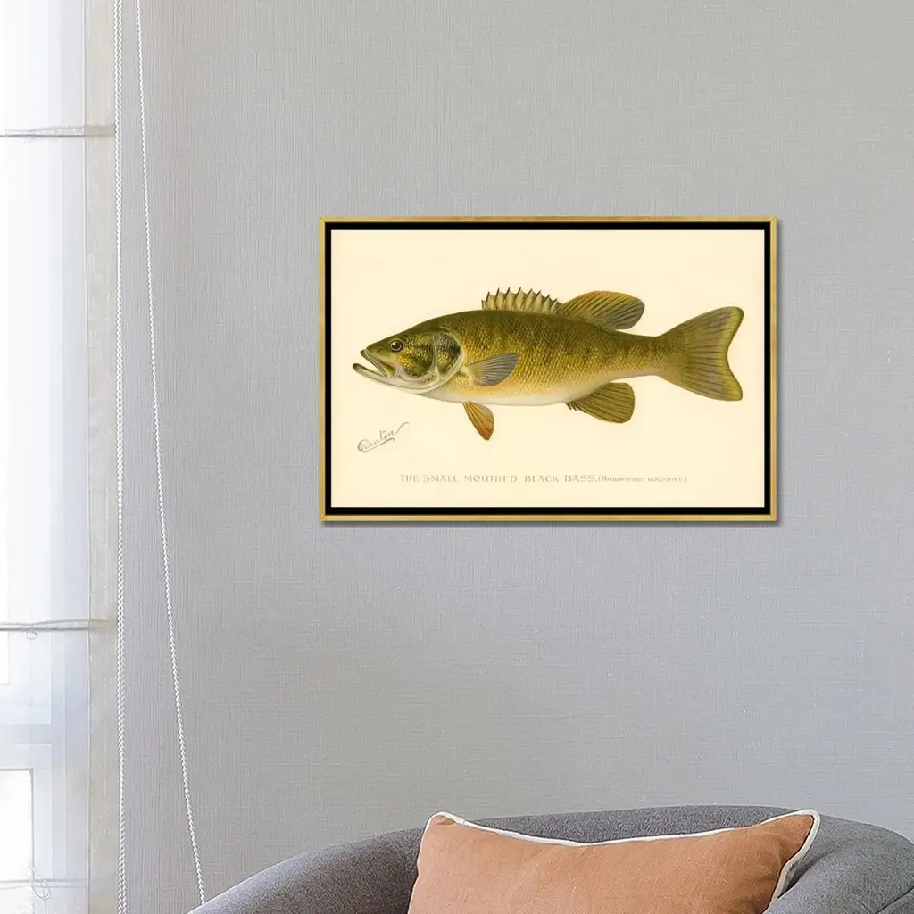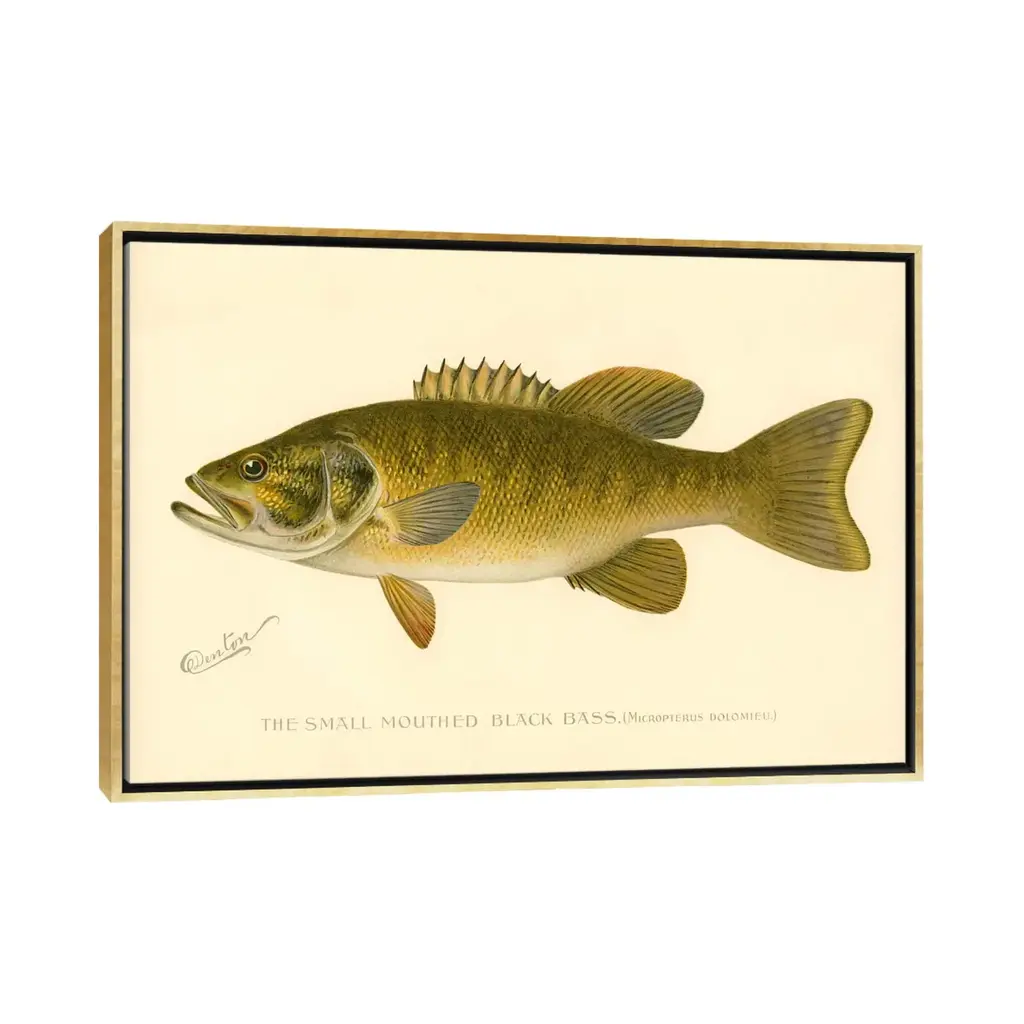 Icanvas "Small Mouthed Black Bass" By Print Collection Framed Canvas Print - Gold - 18x26