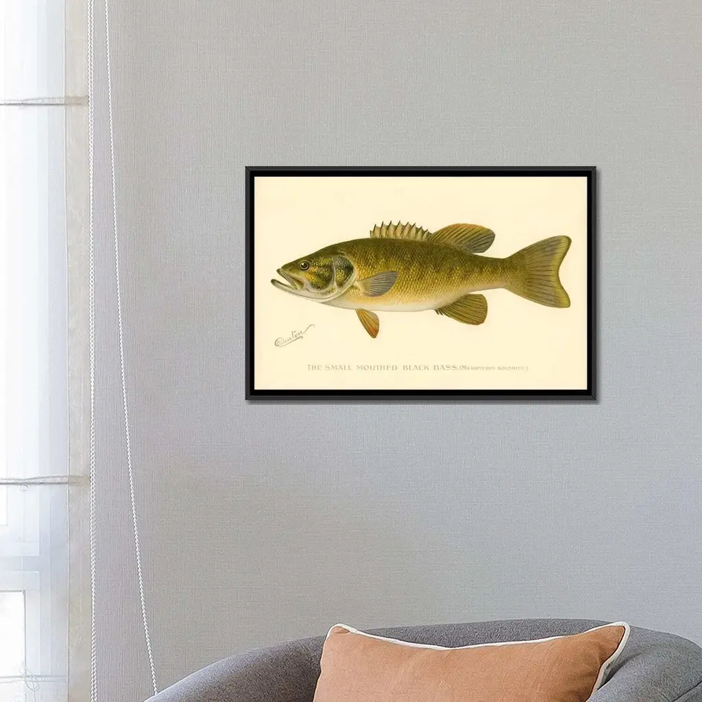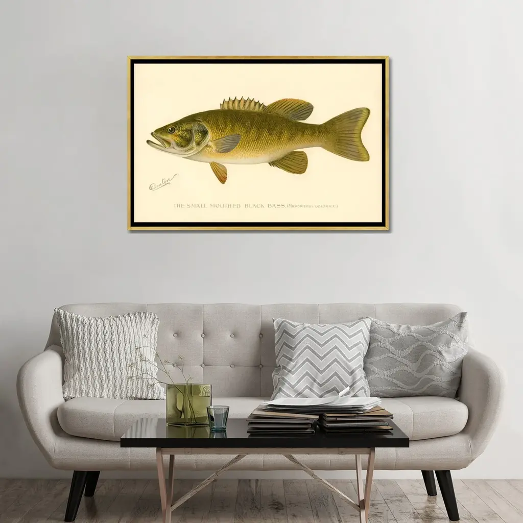 Icanvas "Small Mouthed Black Bass" By Print Collection Framed Canvas Print - Gold - 32x48
