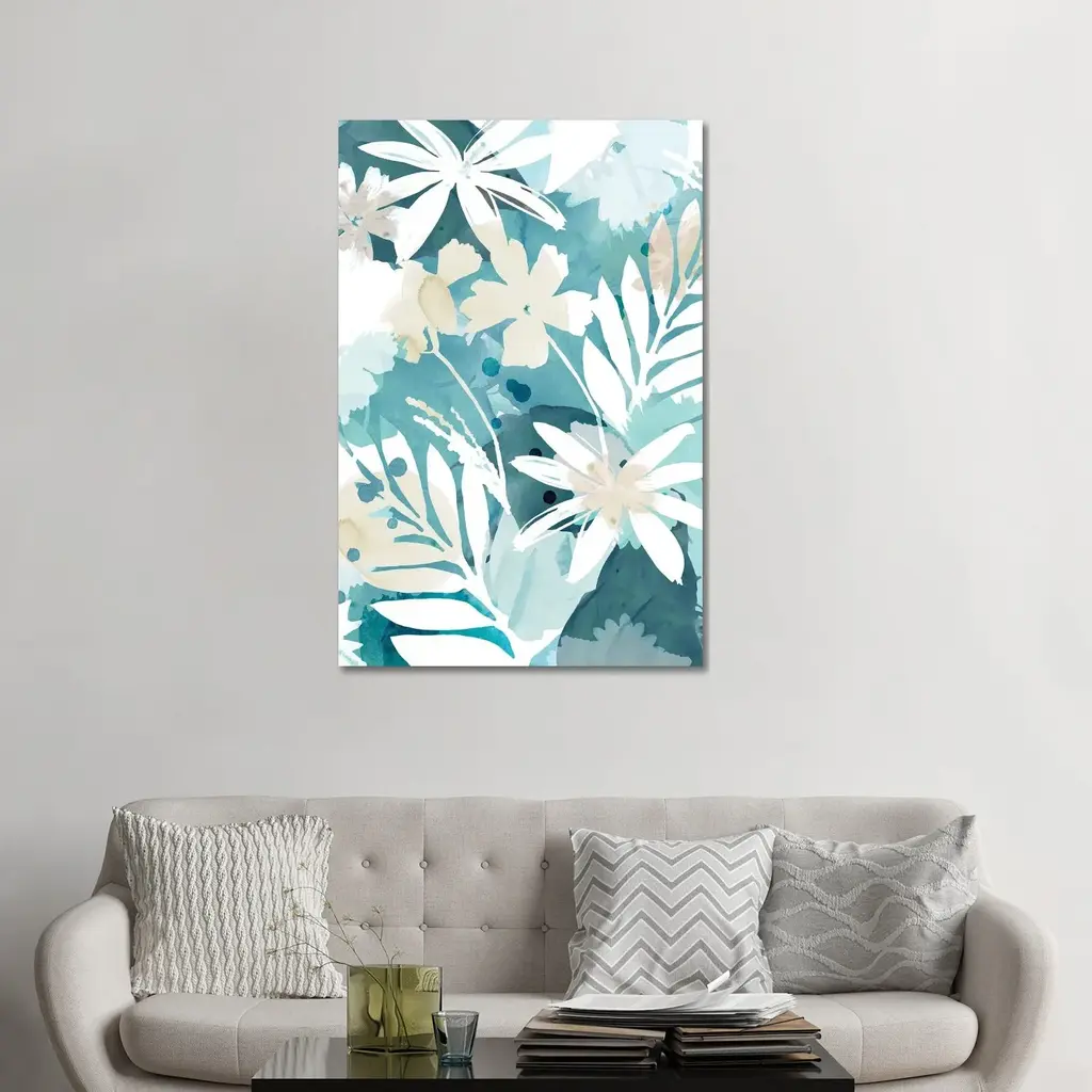 Icanvas "Soft Blue Floral I" By Flora Kouta Canvas Print - 26x18x1.5