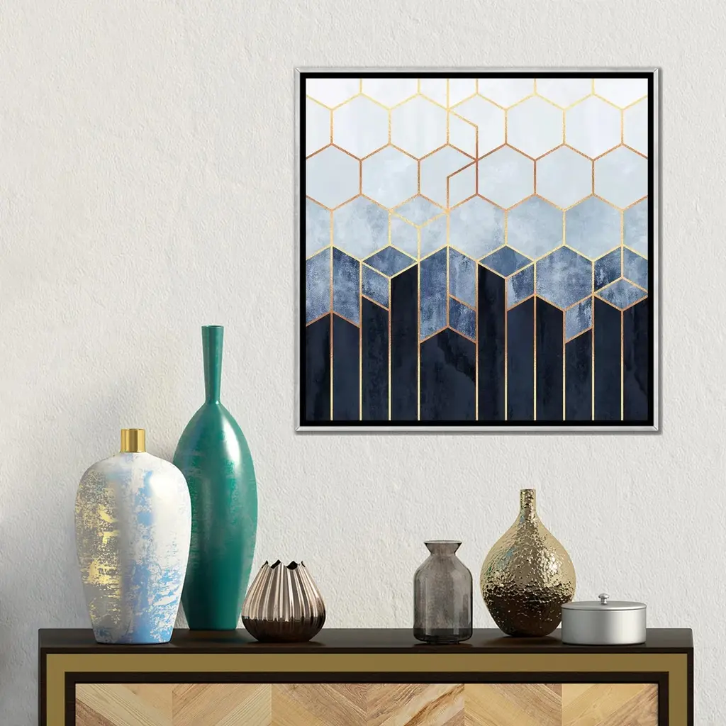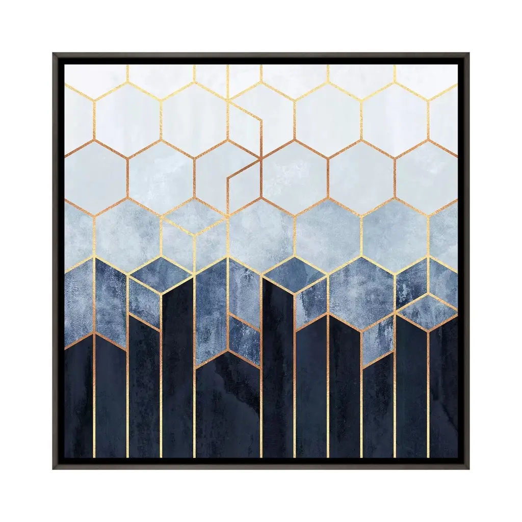 Icanvas "Soft Blue Hexagons" By Elisabeth Fredriksson Framed - 37x37 - Ebony