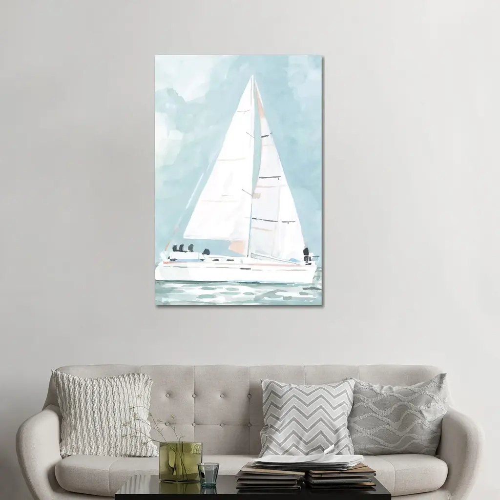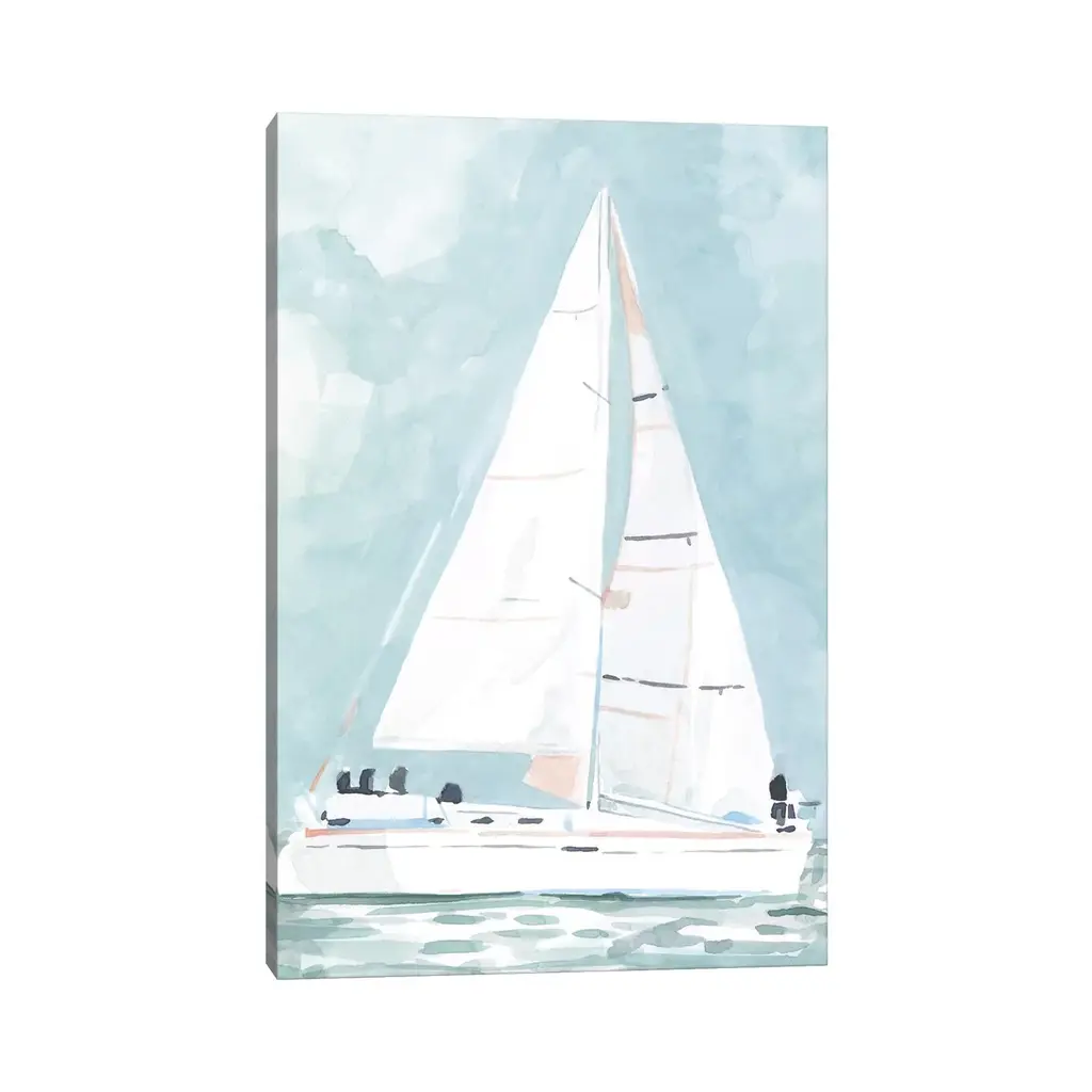 Icanvas "Soft Sailboat I" By Emma Scarvey Canvas Print - 12x8x0.75