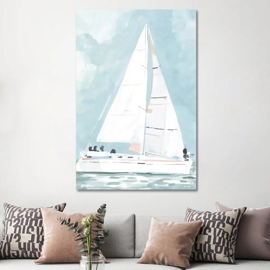 Icanvas "Soft Sailboat I" By Emma Scarvey Canvas Print - 18x12x1.5