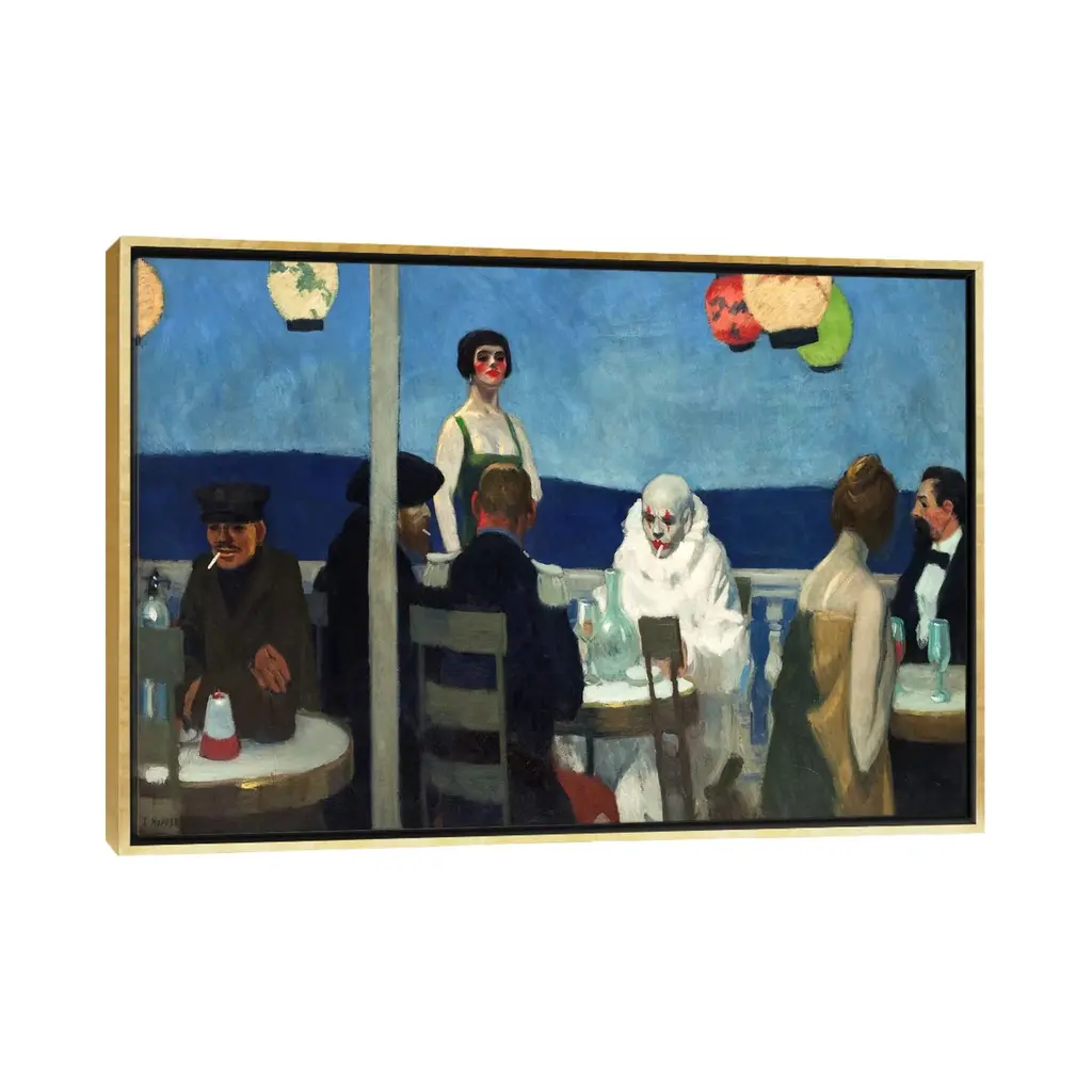 Icanvas "Soir Bleu" By Edward Hopper Framed Canvas Print - Gold - 18x26