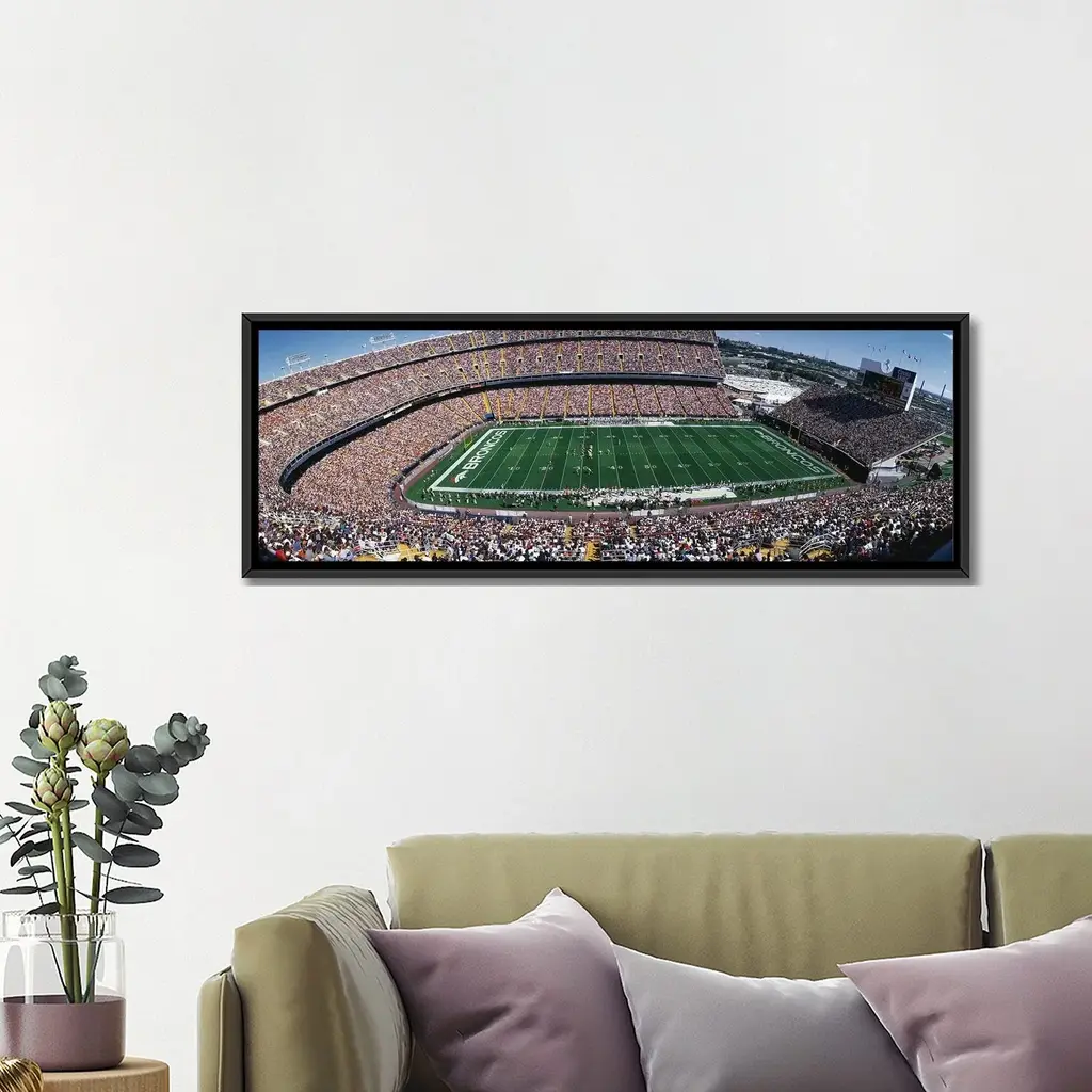 Icanvas "Sold Out Crowd At Mile High Stadium" By Panoramic Images Framed Canvas Print - 16x48 - Black