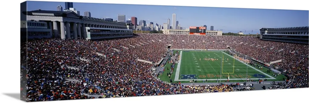 Icanvas "Sold Out Crowd At Mile High Stadium" By Panoramic Images Framed Canvas Print - 16x48 - White