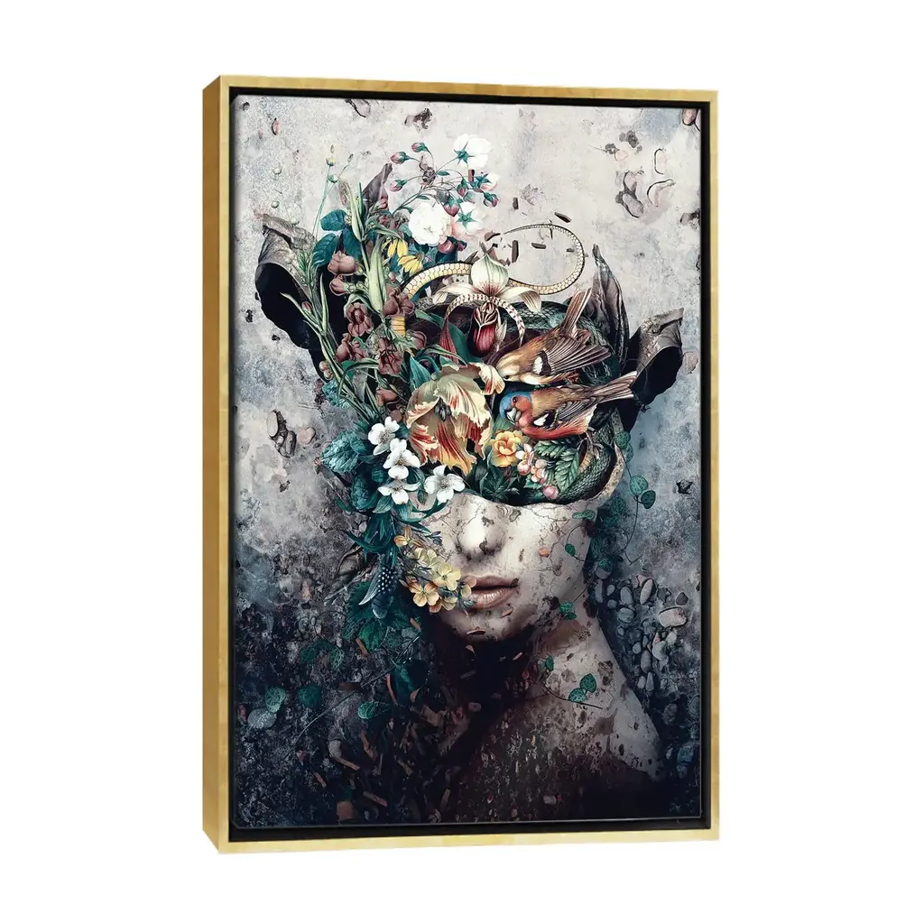 Icanvas "Source Of Life" By Riza Peker Framed Canvas Print - Gold - 48x32