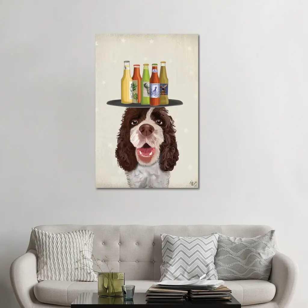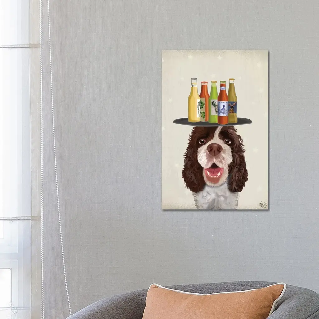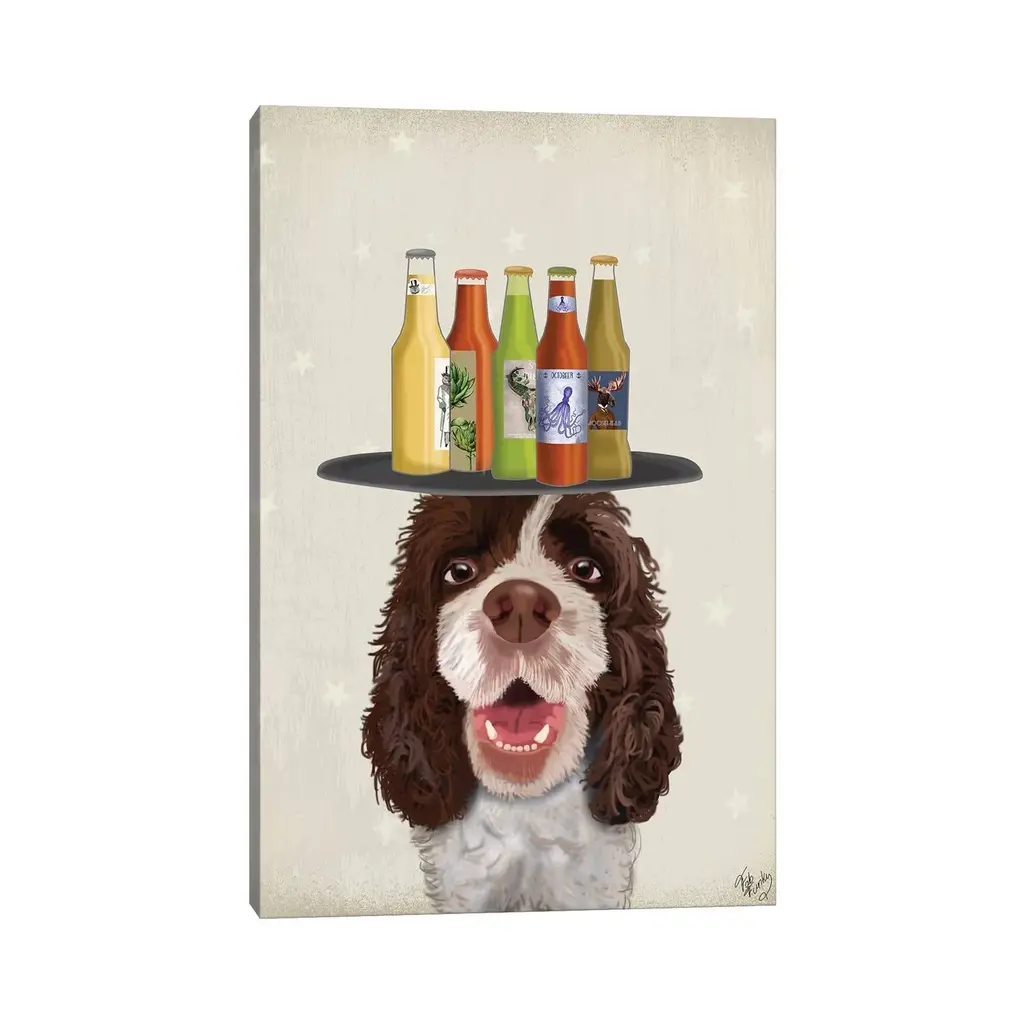 Icanvas "Springer Spaniel Brown White Beer Lover" By Fab Funky Canvas Print - 12x8x0.75