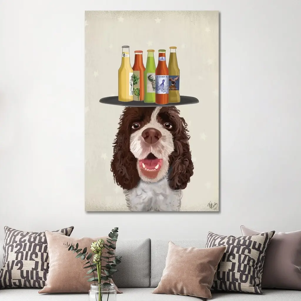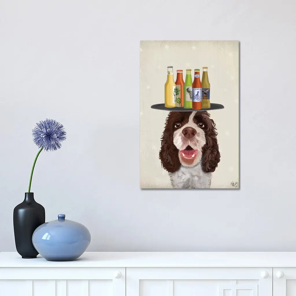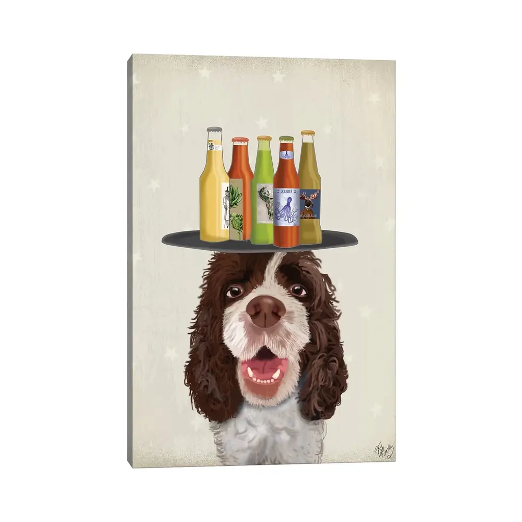 Icanvas "Springer Spaniel Brown White Beer Lover" By Fab Funky Canvas Print - 18x12x1.5