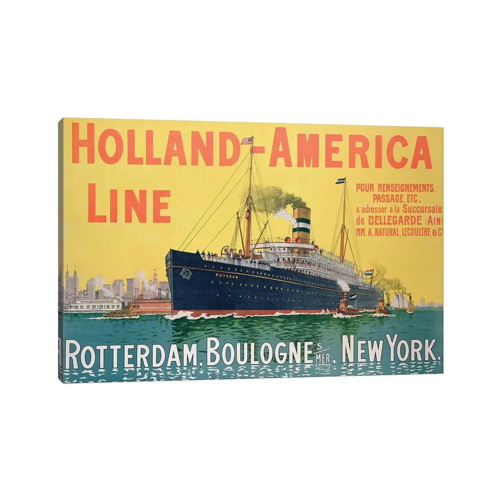 Icanvas "Ss Potsdam, Holland-America Line (Rotterdam To Nyc Via Boulogne-Sur-Mer) Advertisement" By French School Canvas Print - 12x18x1.5