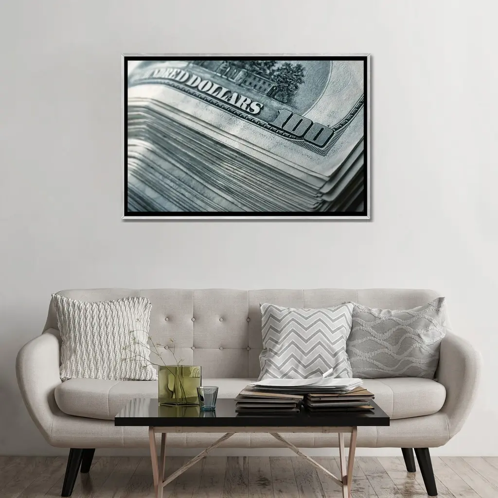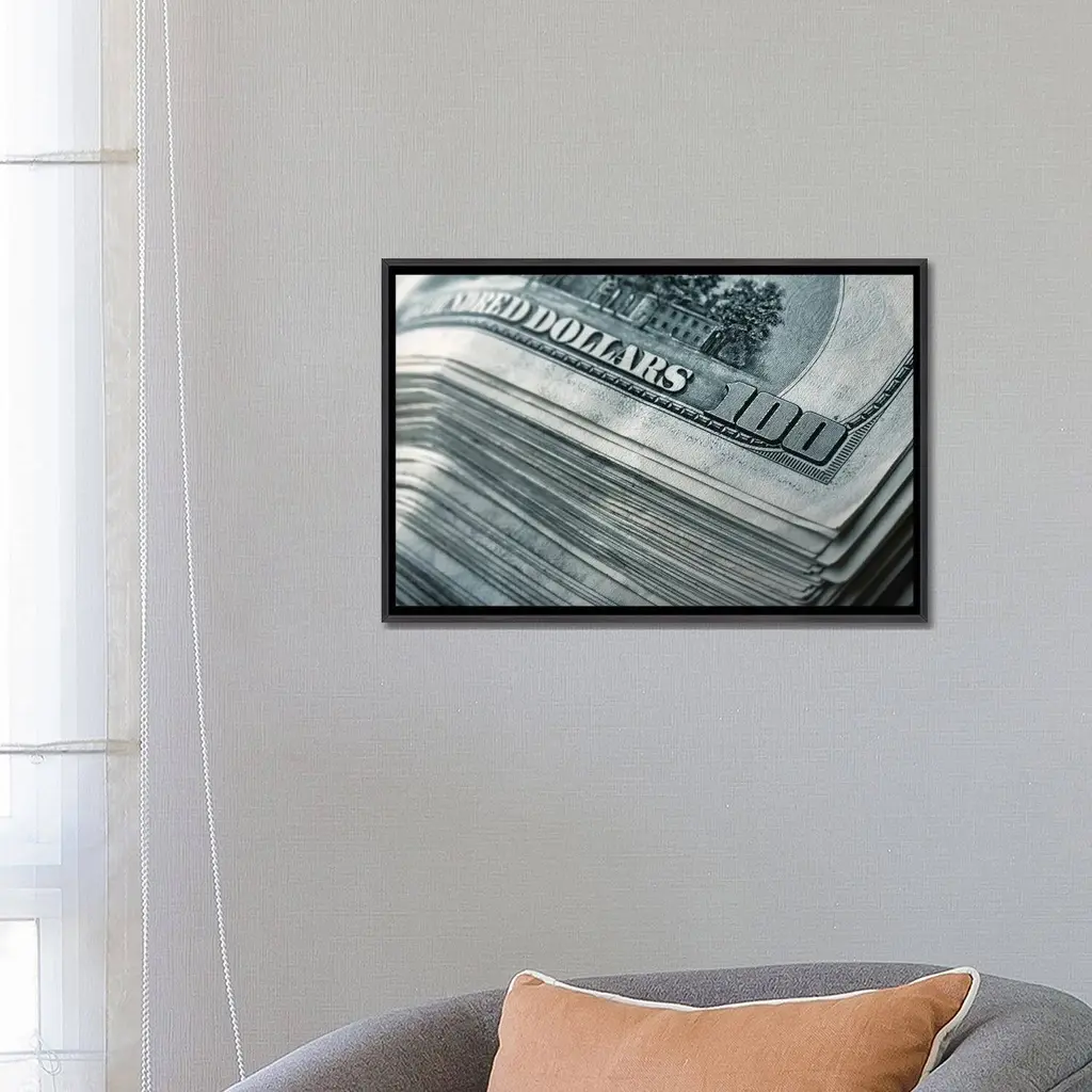 Icanvas "Stack Of Money" By Nomadsoul1 Framed - Ebony - 18x26