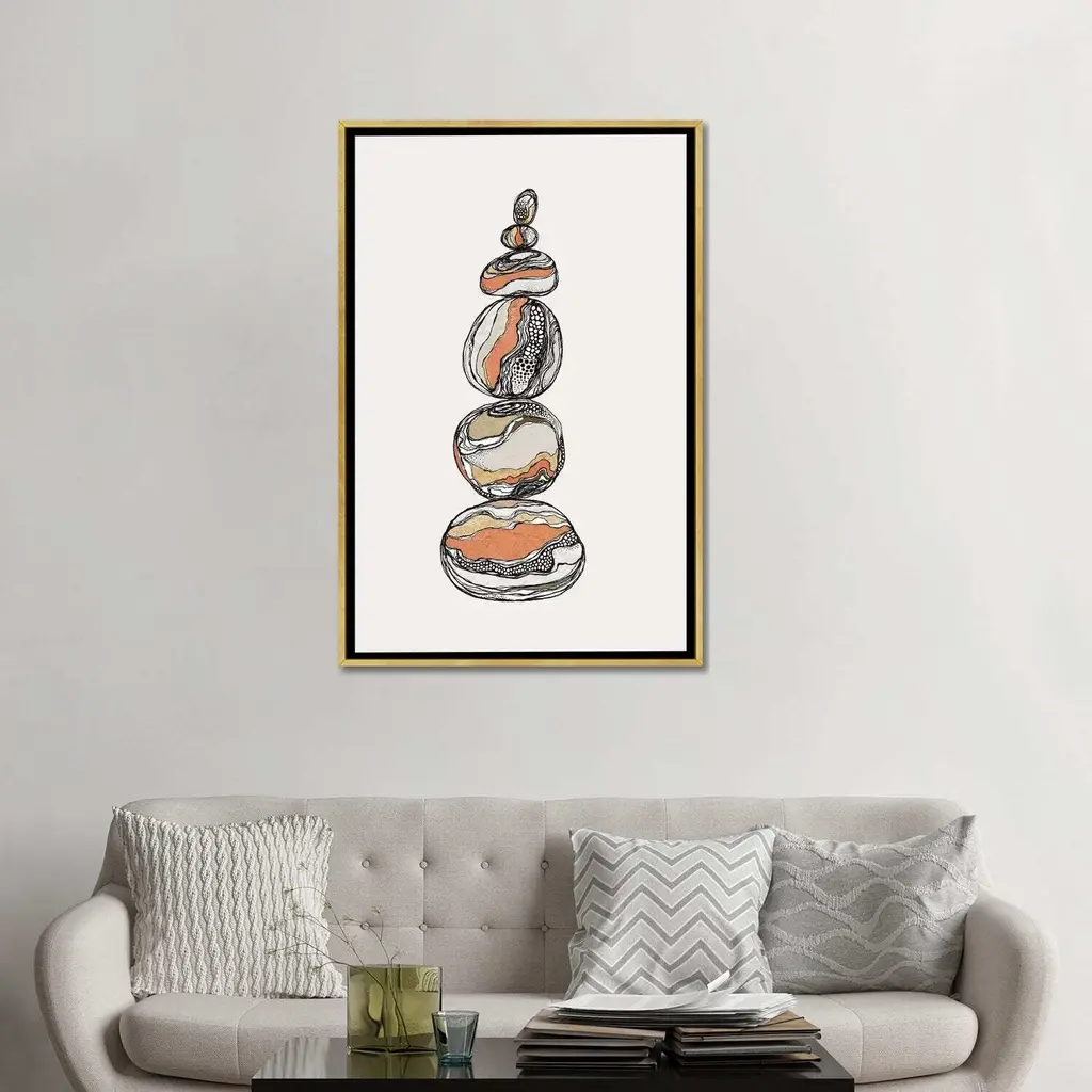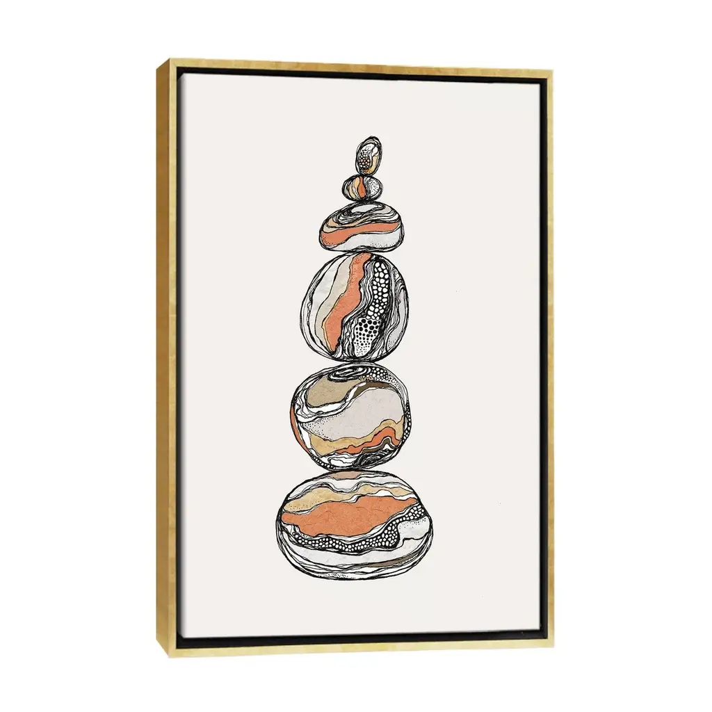 Icanvas "Stacked Rocks" By Soul Curry Art & Illustrations Framed - Gold - 26x18