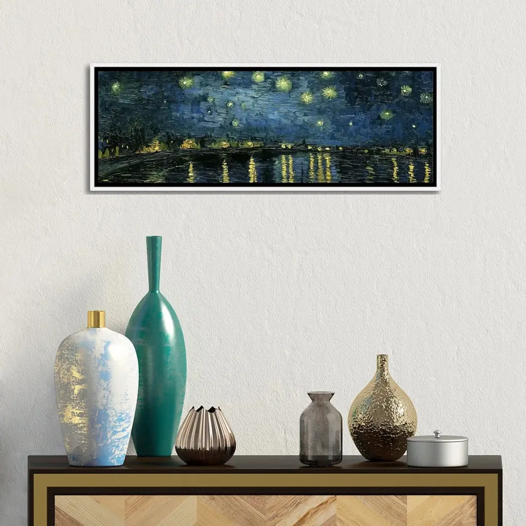 Icanvas "Starry Night Over The Rhone" By Vincent Van Gogh Framed Canvas Print - 12x36 - White