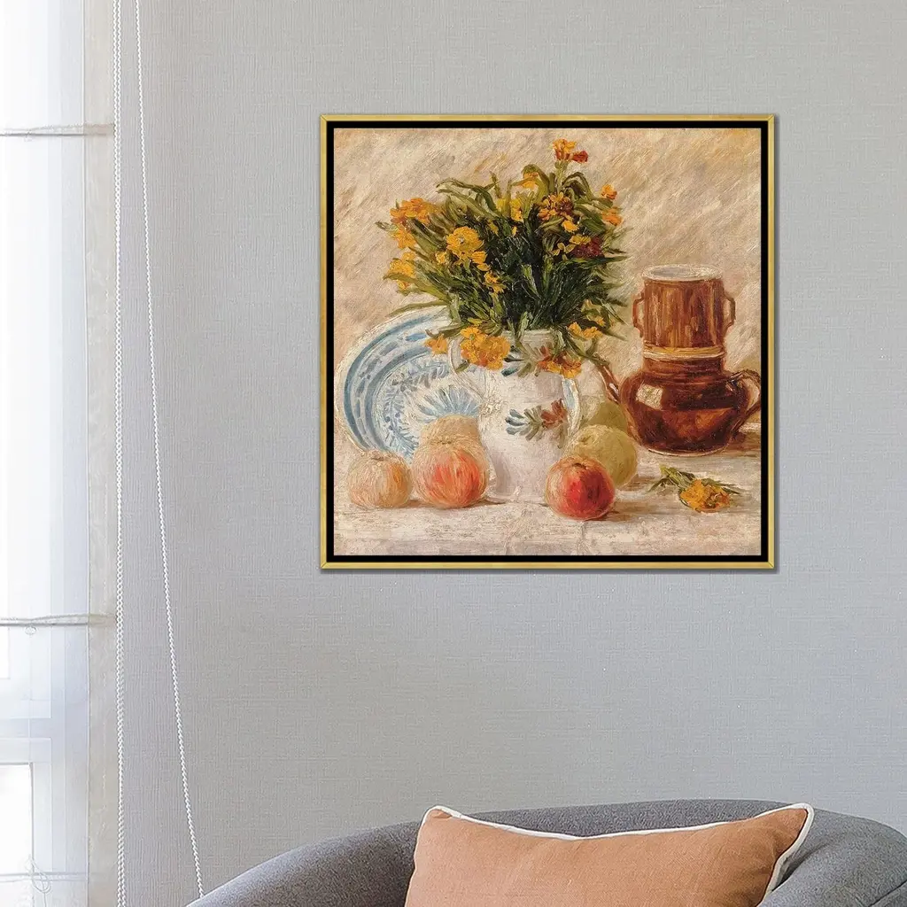 Icanvas "Still Life, 1887 " By Vincent Van Gogh Framed Canvas Print - Gold - 12x12