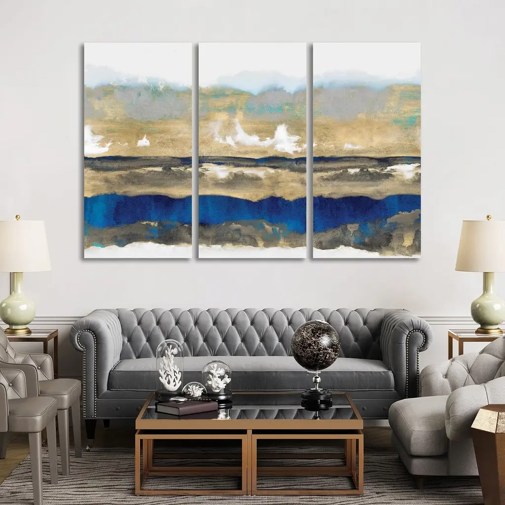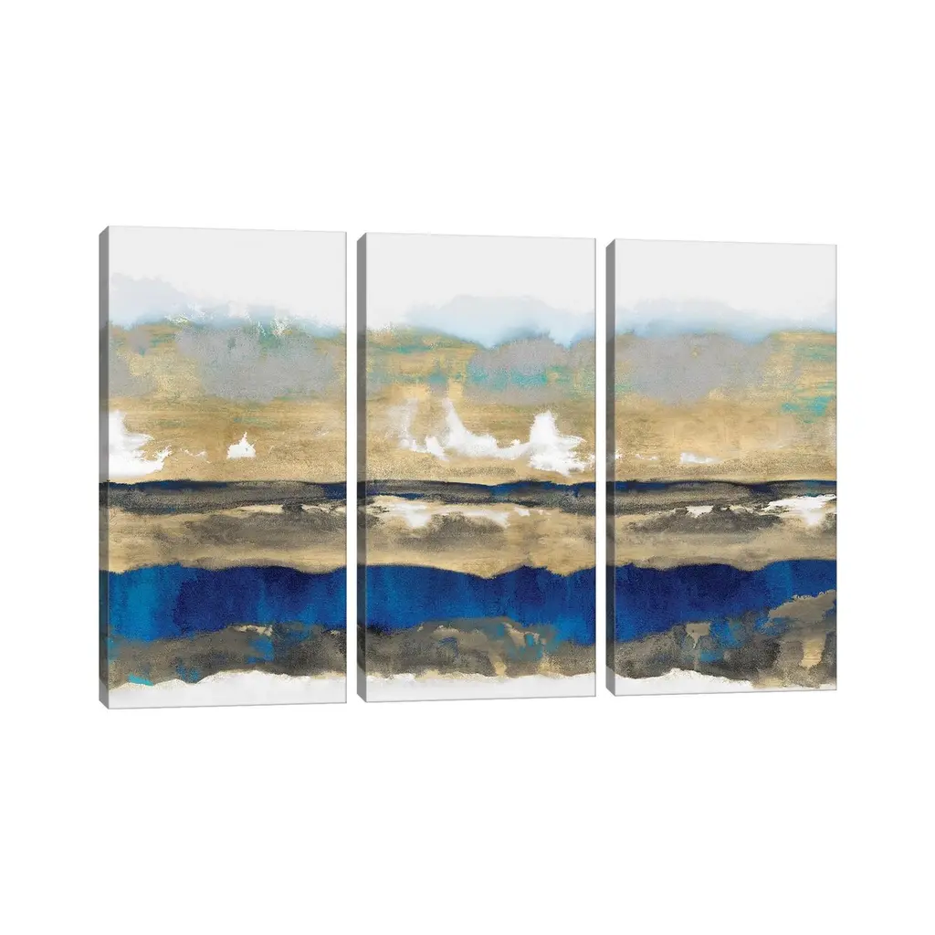Icanvas "Strata In Blue & Gold" By Rachel Springer 3-Piece Canvas Wall Art Set - 40x60x1.5