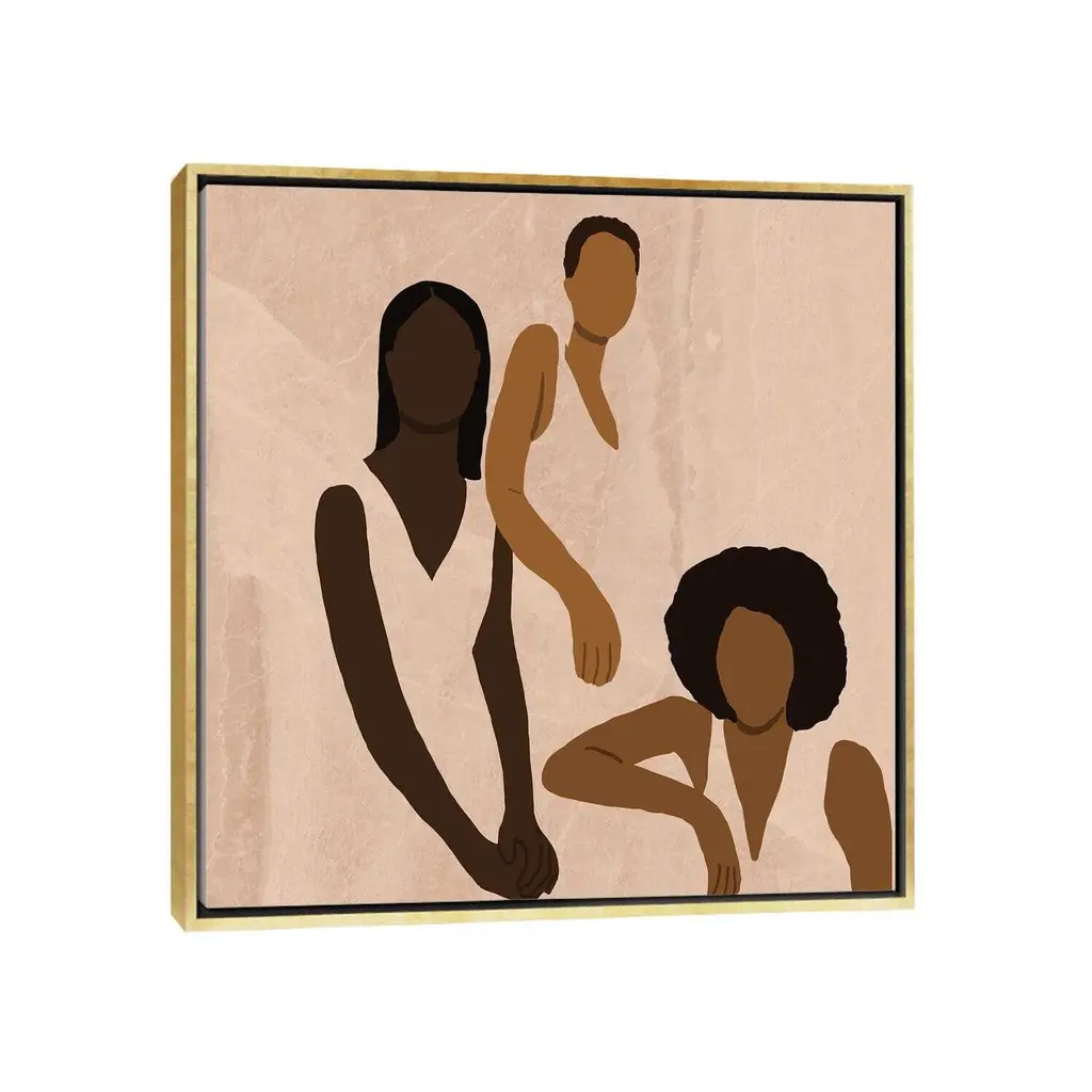 Add a touch of elegance and sophistication to your space with the iCanvas "Stronger Together" by Sarah Dahir Framed artwork. Crafted in the USA with artist-grade canvas, this giclee canvas artwork offers the texture, look, and feel of fine-art paintings. The gallery-wrap style, with professionally hand-stretched and stapled North American pine-wood bars, ensures a high-quality presentation that is commonly seen in art galleries. The artwork is mounted to a 2-inch thick hard wood frame, creating a "floating" illusion with a 3/8" space between the art and frame. With fade-resistant archival inks, the colors will remain vibrant for decades even when exposed to strong light. Experience contemporary style and exceptional detail with this stunning piece.Features: