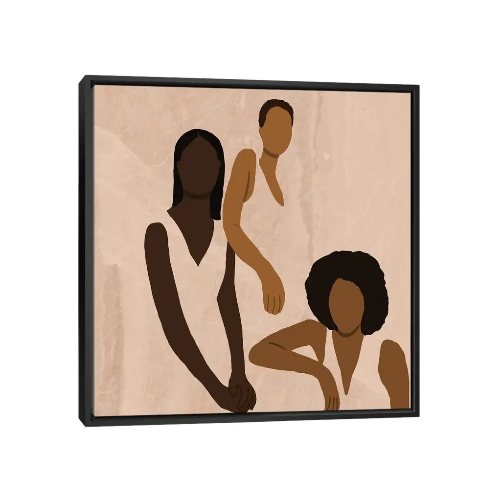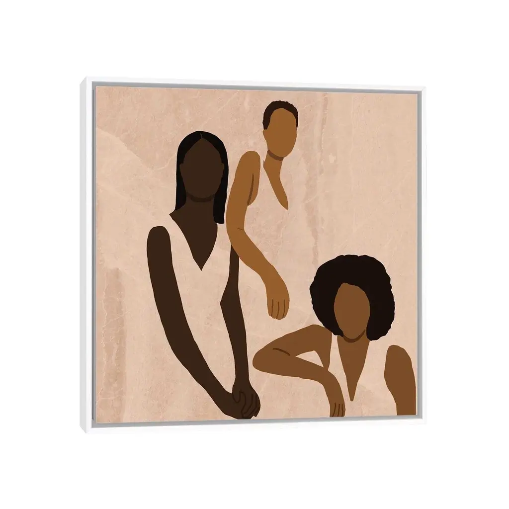 Add a touch of elegance and sophistication to your space with the iCanvas "Stronger Together" by Sarah Dahir Framed artwork. Crafted in the USA with artist-grade canvas, this giclee canvas artwork offers the texture, look, and feel of fine-art paintings. The gallery-wrap style, with professionally hand-stretched and stapled North American pine-wood bars, ensures a high-quality presentation that is commonly seen in art galleries. The artwork is mounted to a 2-inch thick hard wood frame, creating a "floating" illusion with a 3/8" space between the art and frame. With fade-resistant archival inks, the colors will remain vibrant for decades even when exposed to strong light. Experience contemporary style and exceptional detail with this stunning piece.Features: