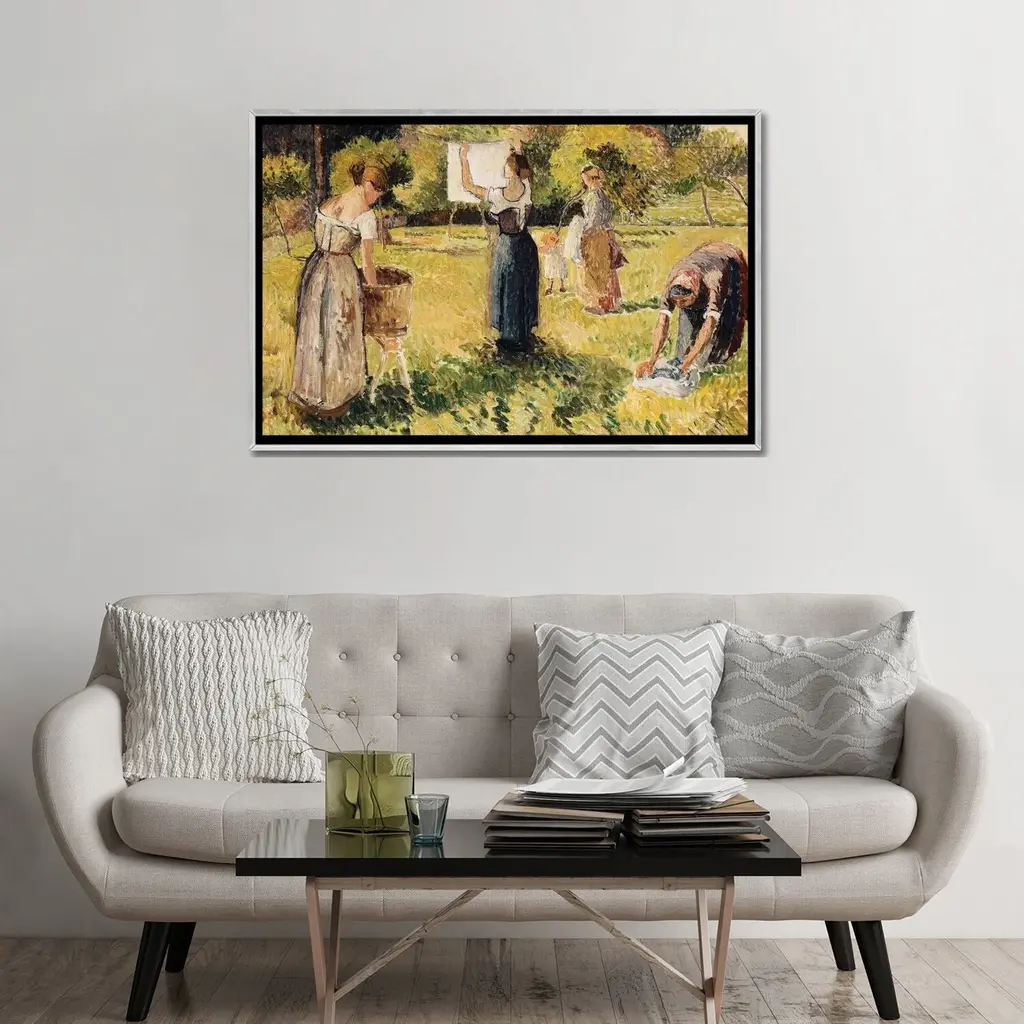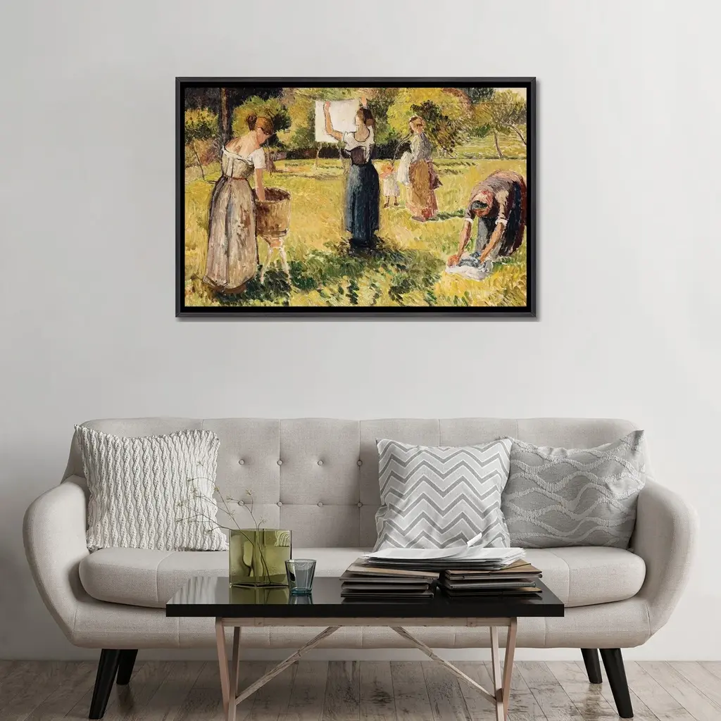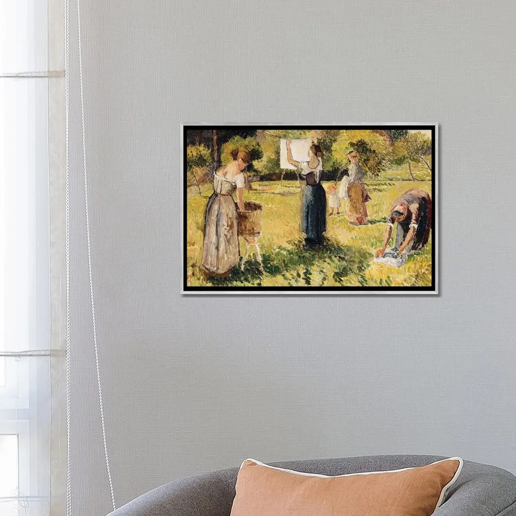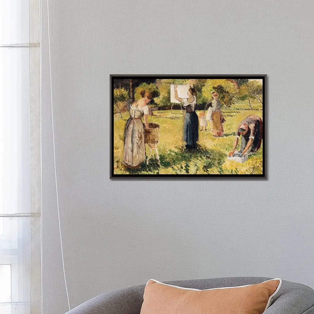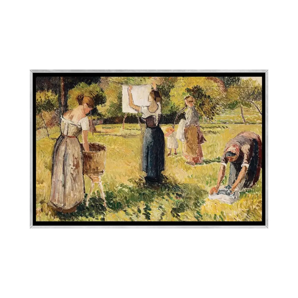 Icanvas "Study Of Washers At Eragny, C.1901" By Camille Pissarro Framed - Charcoal - 18x26