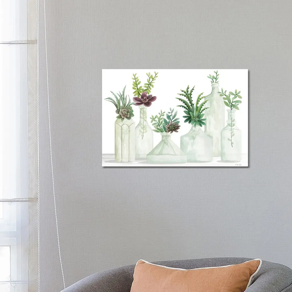 Icanvas "Succulent Bottles" By Cindy Jacobs Canvas Print - 18x26x1.5
