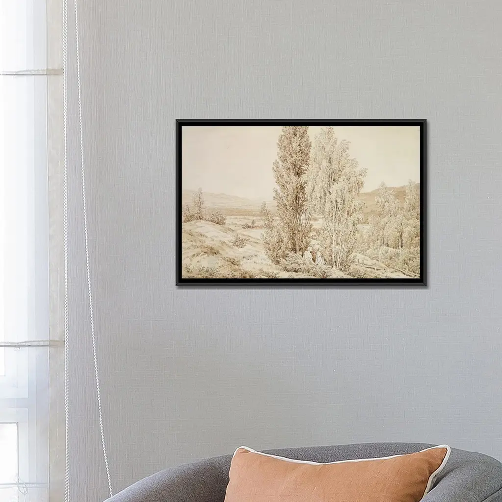 Icanvas "Summer " By Caspar David Friedrich Framed Canvas Print - Black - 32x48
