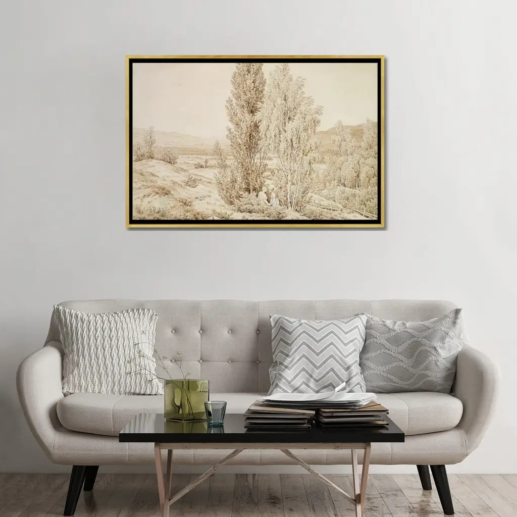 Icanvas "Summer " By Caspar David Friedrich Framed Canvas Print - Gold - 18x26