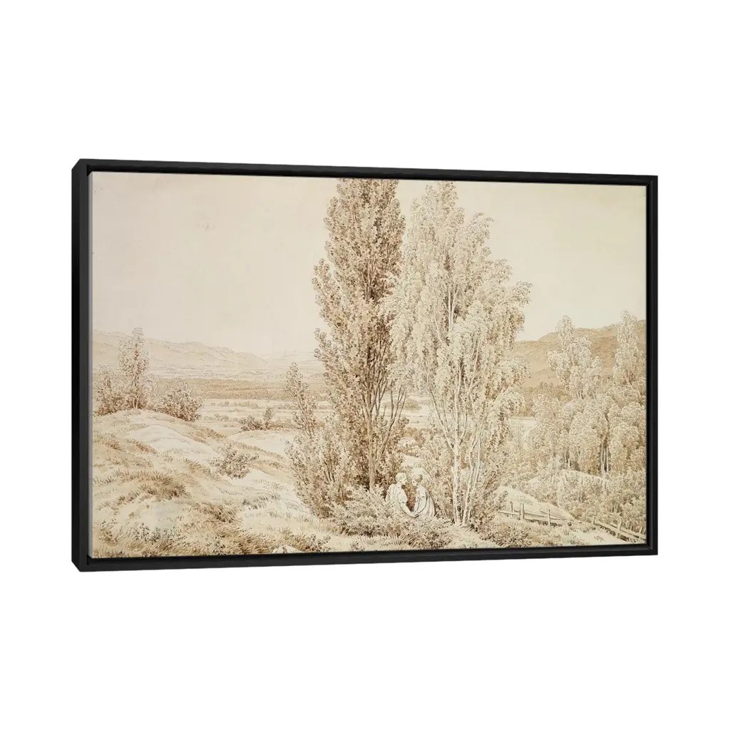 Icanvas "Summer " By Caspar David Friedrich Framed Canvas Print - Gold - 26x40