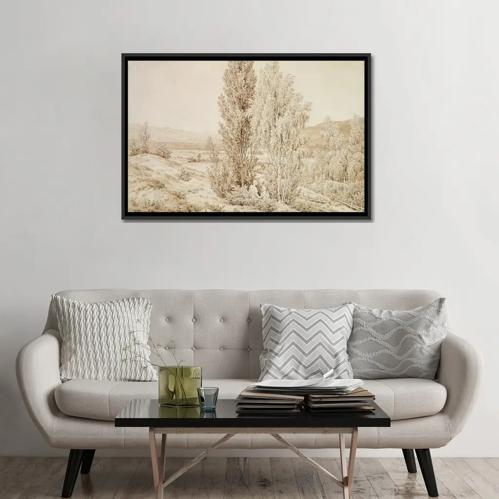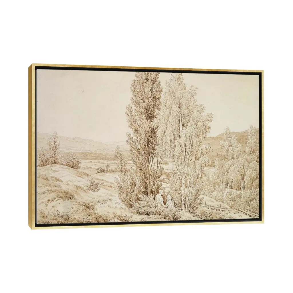Icanvas "Summer " By Caspar David Friedrich Framed Canvas Print - White - 32x48
