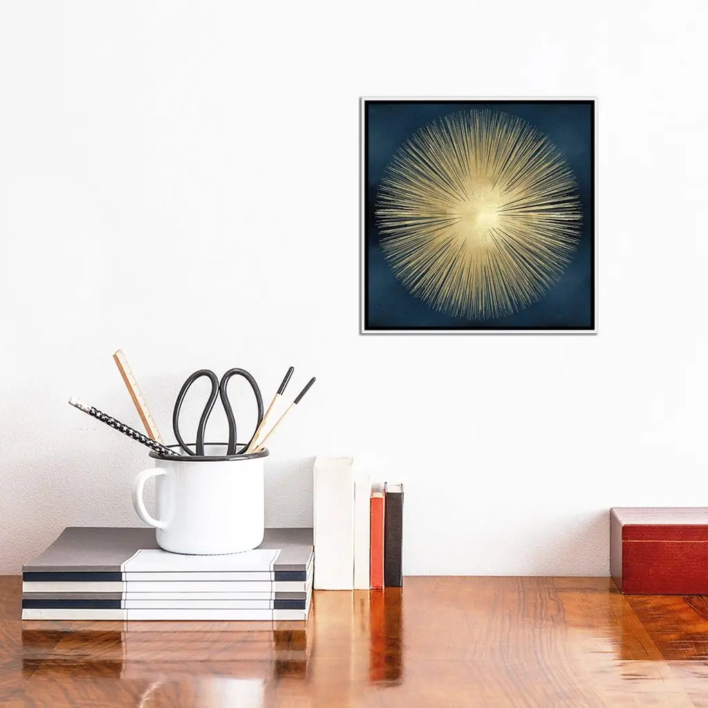 Icanvas "Sunburst Gold On Blue I" By Abby Young Framed Canvas Print - 12x12 - White
