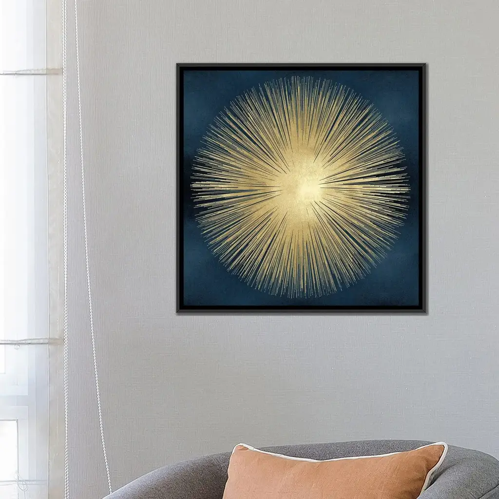 Icanvas "Sunburst Gold On Blue I" By Abby Young Framed Canvas Print - 26x26 - Black