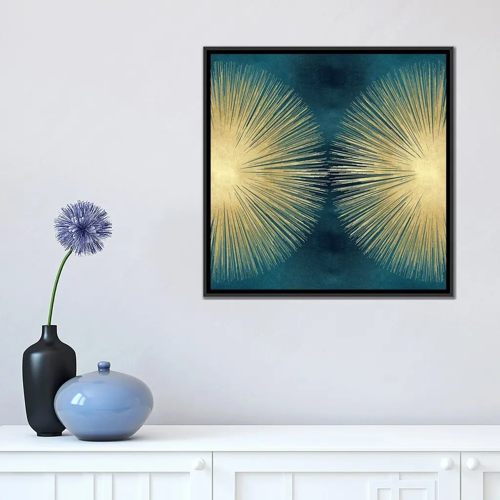 Icanvas "Sunburst Gold On Teal Ii" By Abby Young Framed Canvas Print - 18x18 - Black