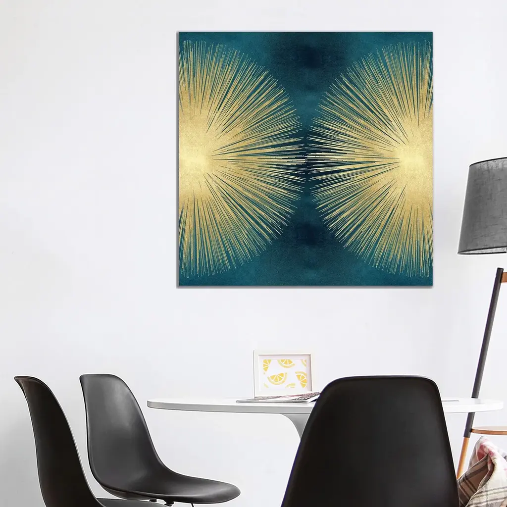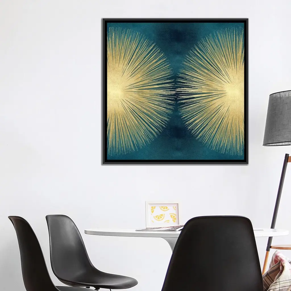 Icanvas "Sunburst Gold On Teal Ii" By Abby Young Framed Canvas Print - 37x37 - Black