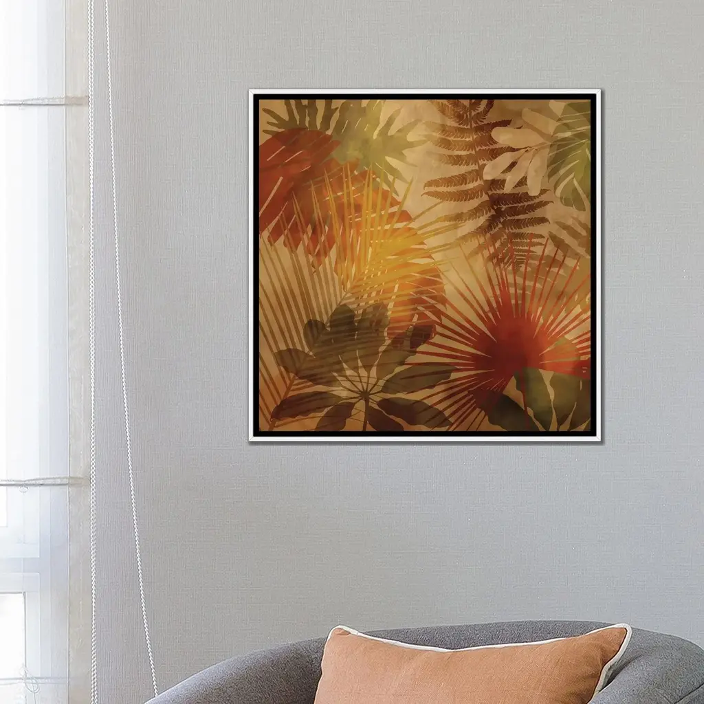 Icanvas "Sunlit Palms Ii" By John Seba Framed Canvas Print - White - 18x18