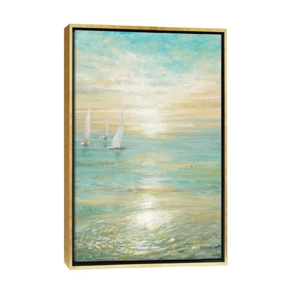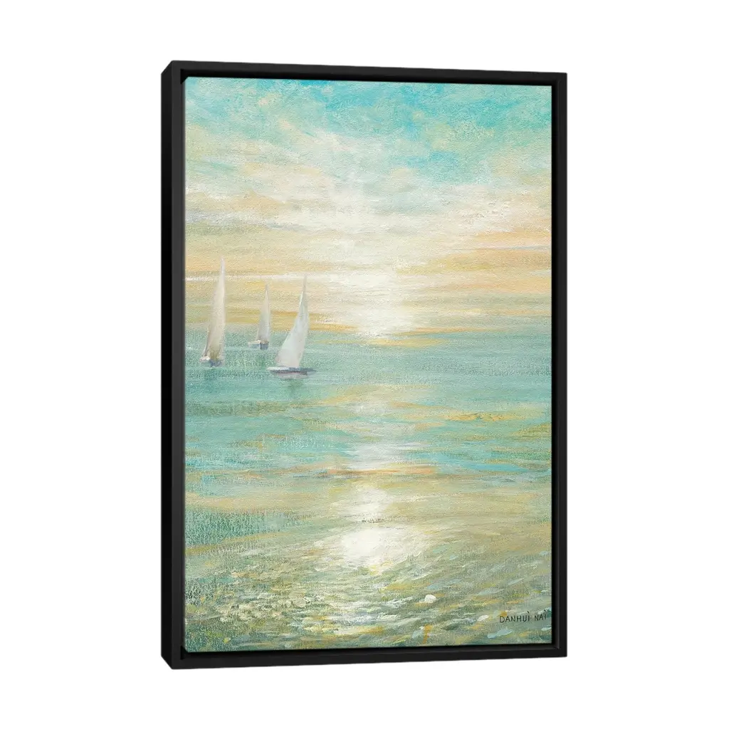Icanvas "Sunrise Sailboats I" By Danhui Nai Framed Canvas Print - Black - 40x26