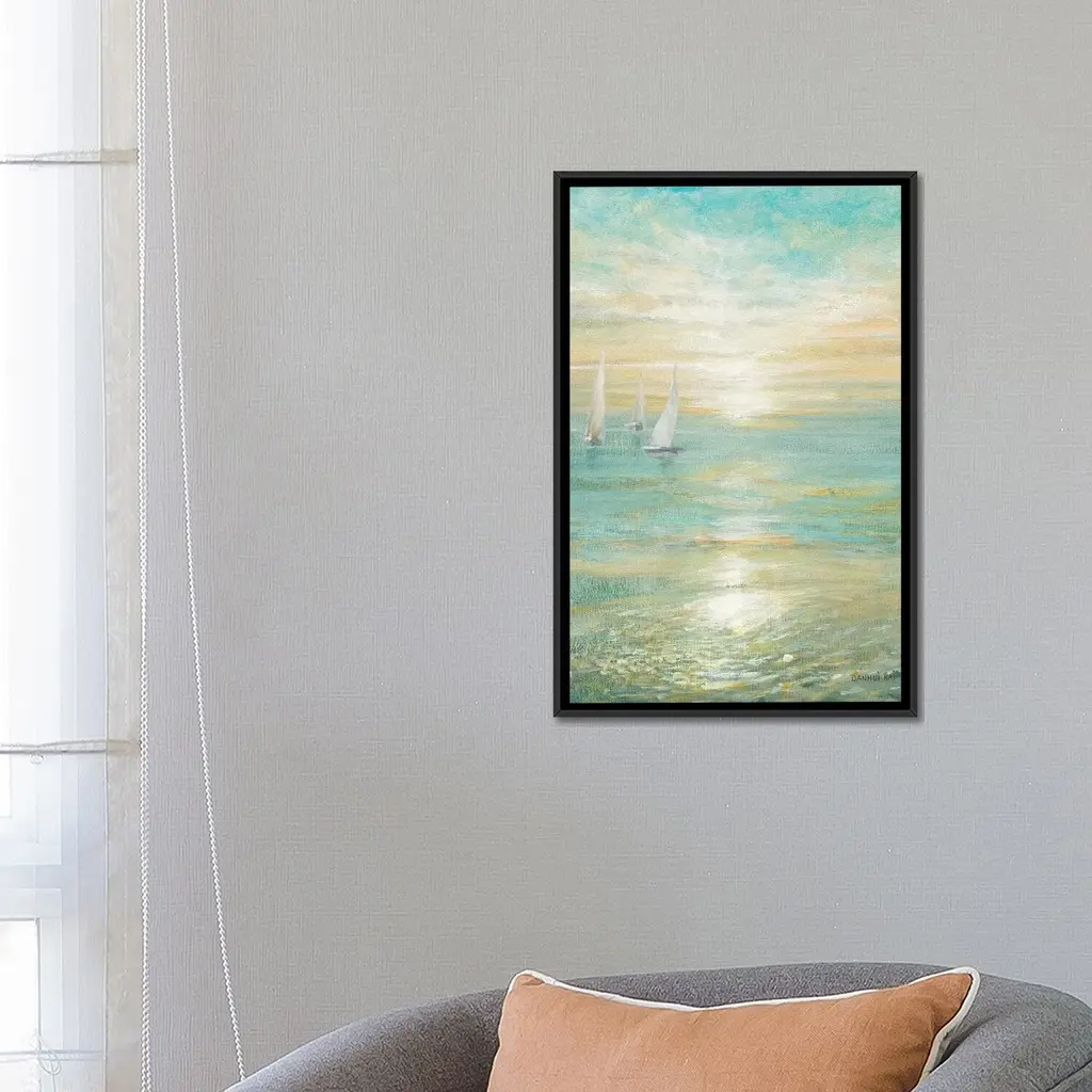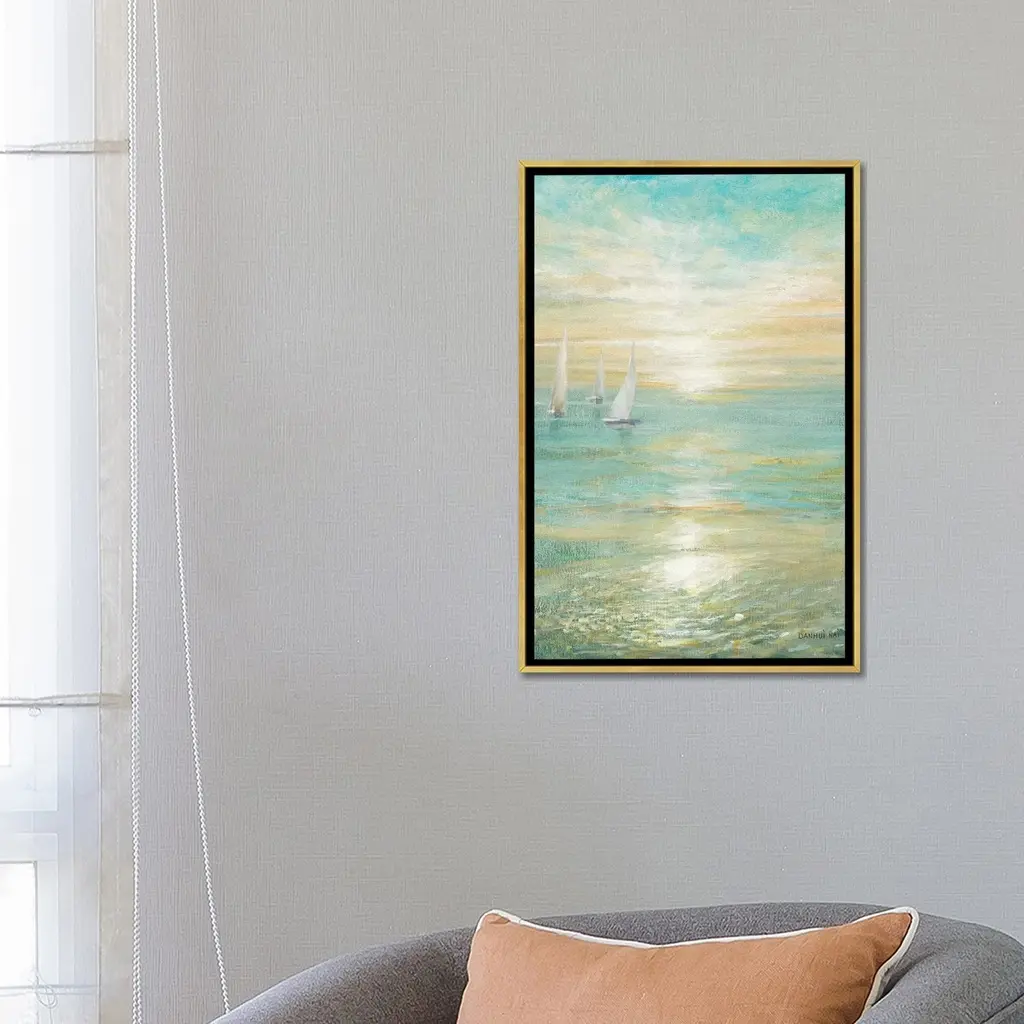 Icanvas "Sunrise Sailboats I" By Danhui Nai Framed Canvas Print - Gold - 48x32