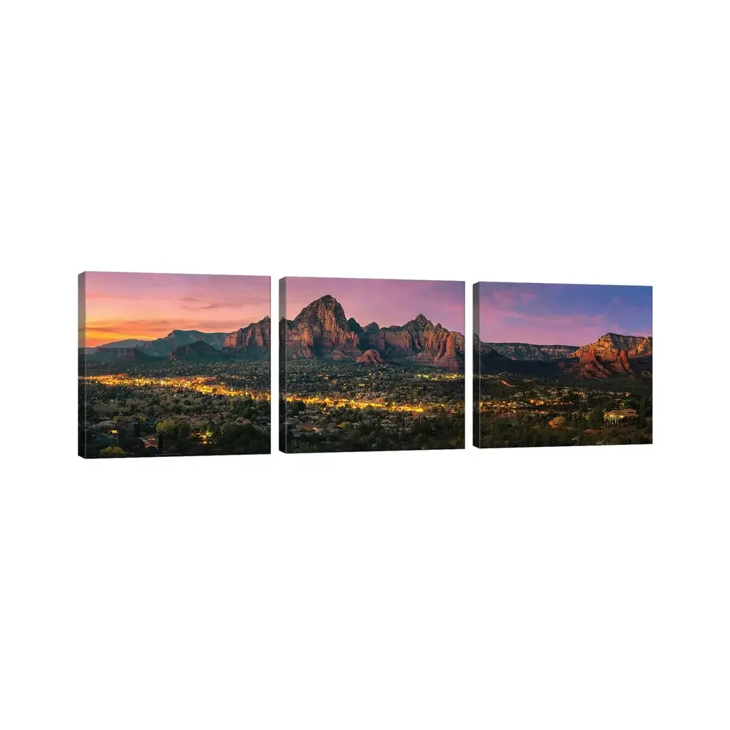 Icanvas "Sunset In Sedona Arizona" By Jonathan Ross Photography 3-Piece Canvas Wall Art Set - 20x60x1.5