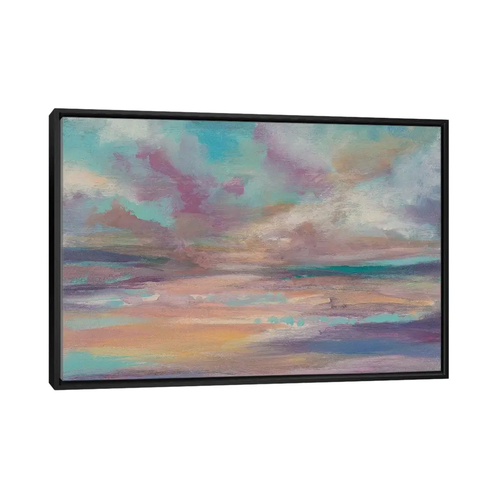 Add brilliance and exceptional detail to your space with the iCanvas "Sunset Light I" framed canvas print by Jennifer Goldberger. Crafted in the USA with artist-grade canvas, this Giclee artwork offers the texture, look, and feel of fine-art paintings. Professionally hand-stretched and stapled over North American pine-wood bars in Gallery Wrap style, it showcases the artwork in a floating illusion with a 3/8" space between the art and frame. The fade-resistant archival inks ensure vibrant color reproduction that remains impeccable for decades, even in strong light. Elevate your home decor with this contemporary and uncompromising style!Features: