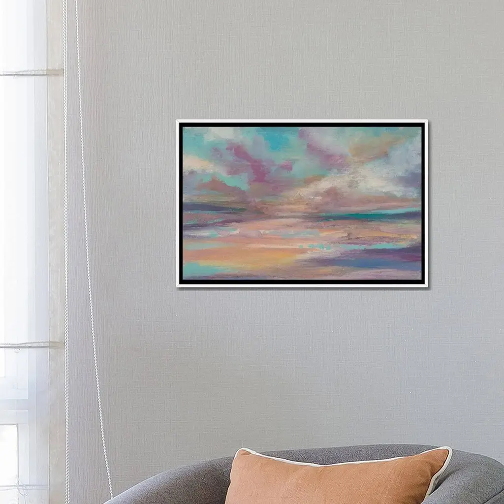 Add brilliance and exceptional detail to your space with the iCanvas "Sunset Light I" framed canvas print by Jennifer Goldberger. Crafted in the USA with artist-grade canvas, this Giclee artwork offers the texture, look, and feel of fine-art paintings. Professionally hand-stretched and stapled over North American pine-wood bars in Gallery Wrap style, it showcases the artwork in a floating illusion with a 3/8" space between the art and frame. The fade-resistant archival inks ensure vibrant color reproduction that remains impeccable for decades, even in strong light. Elevate your home decor with this contemporary and uncompromising style!Features: