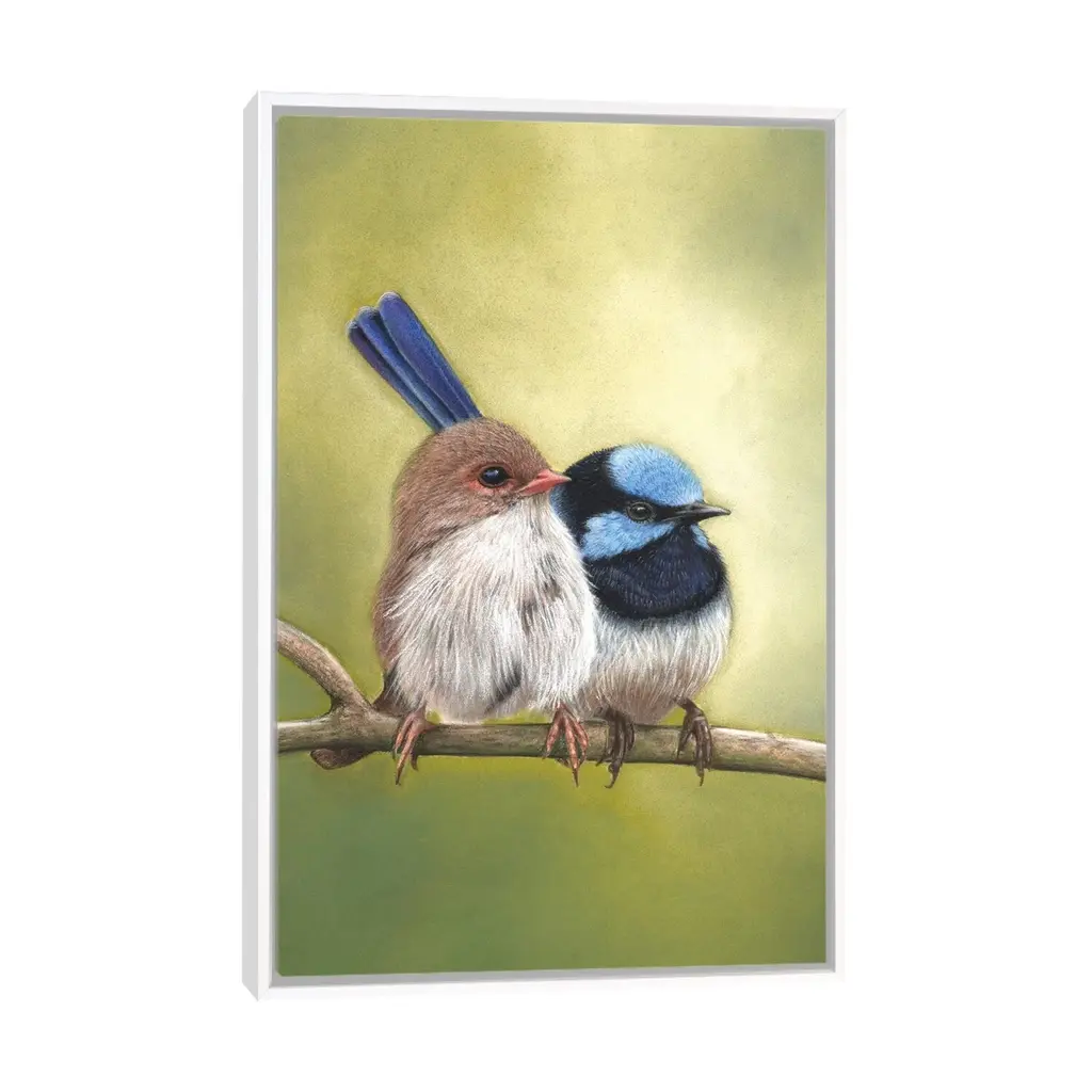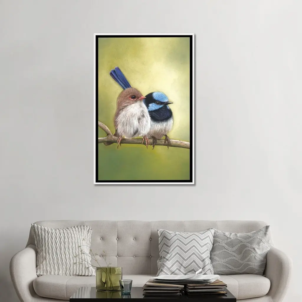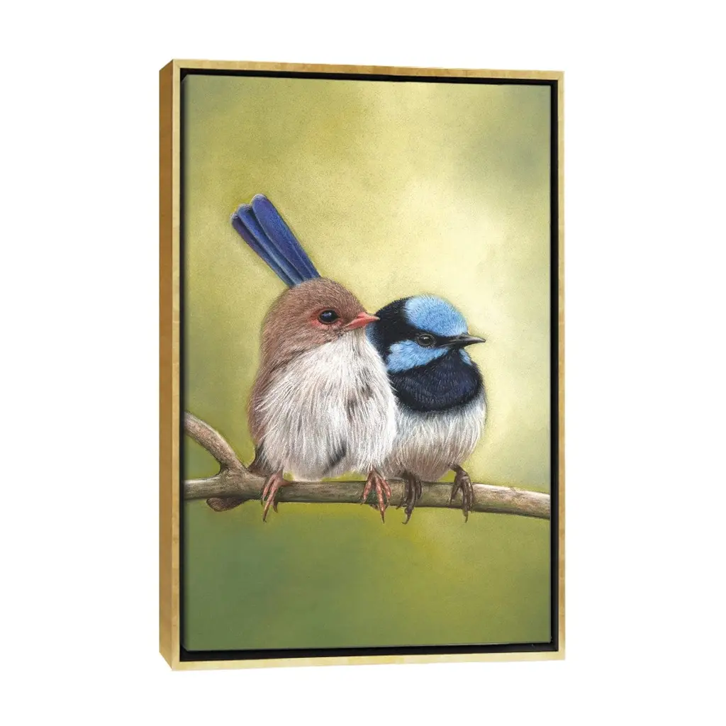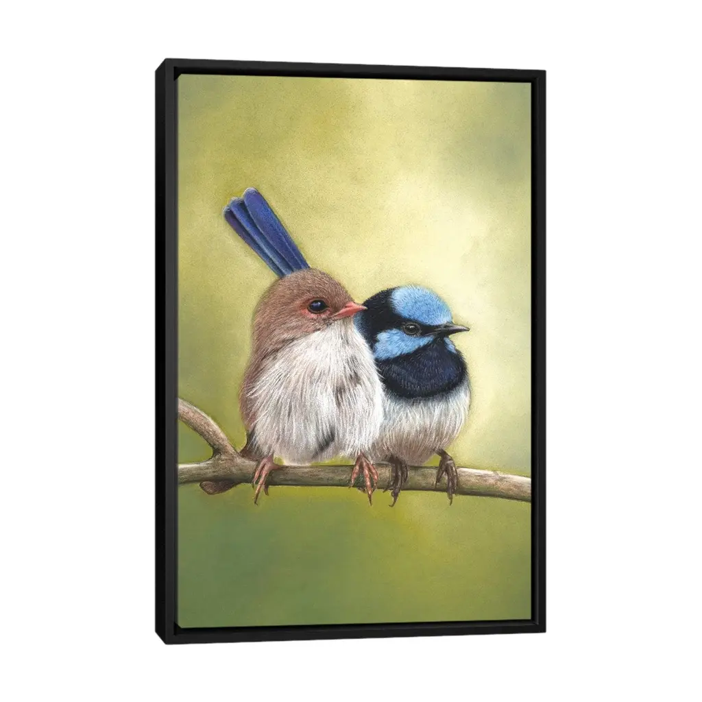 Icanvas "Superb Fairy Wren Couple" By Ann Hutchinson Framed - White - 40x26