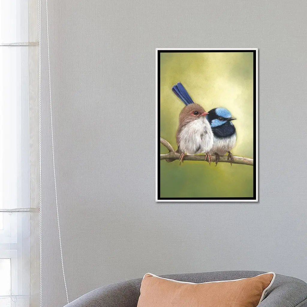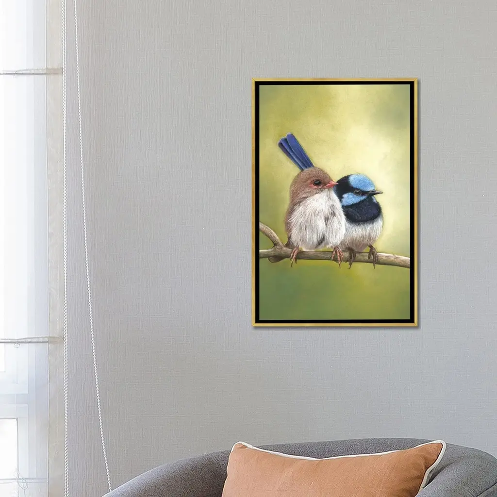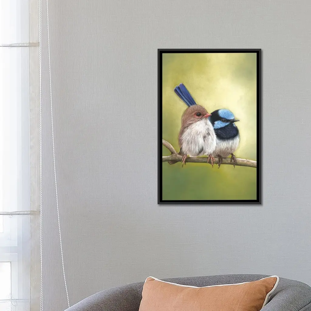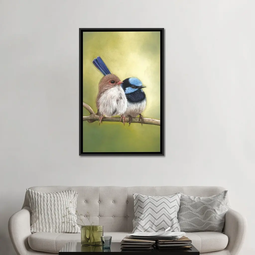 Icanvas "Superb Fairy Wren Couple" By Ann Hutchinson Framed - White - 40x26
