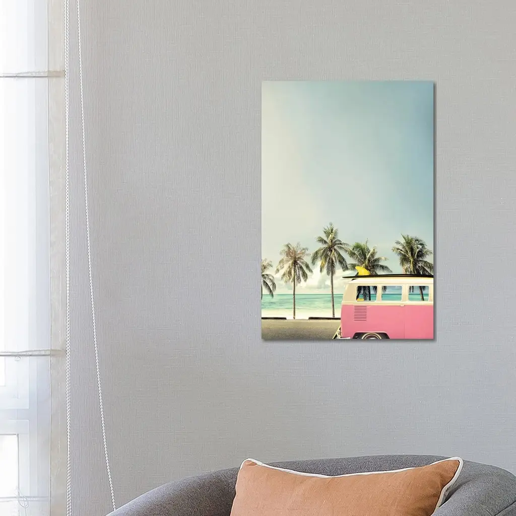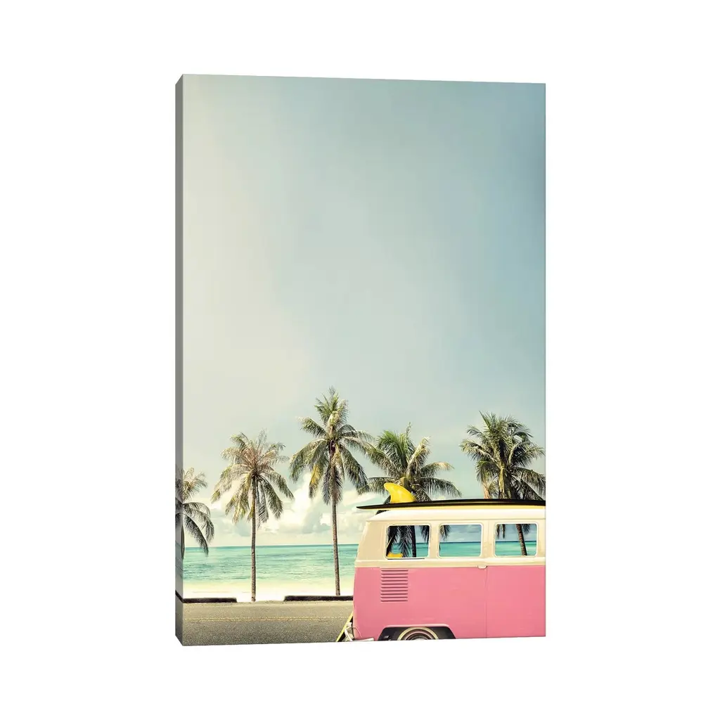 Icanvas "Surf Bus Pink" By Design Fabrikken Canvas Print - 18x12x1.5