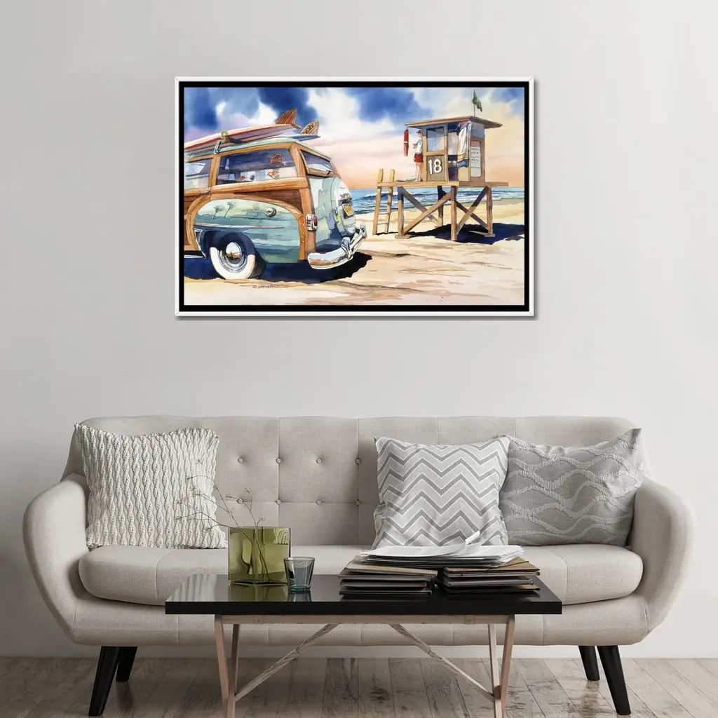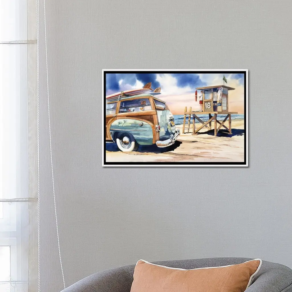 Icanvas "Surf Watch" By Bill Drysdale Framed Canvas Print - White - 32x48