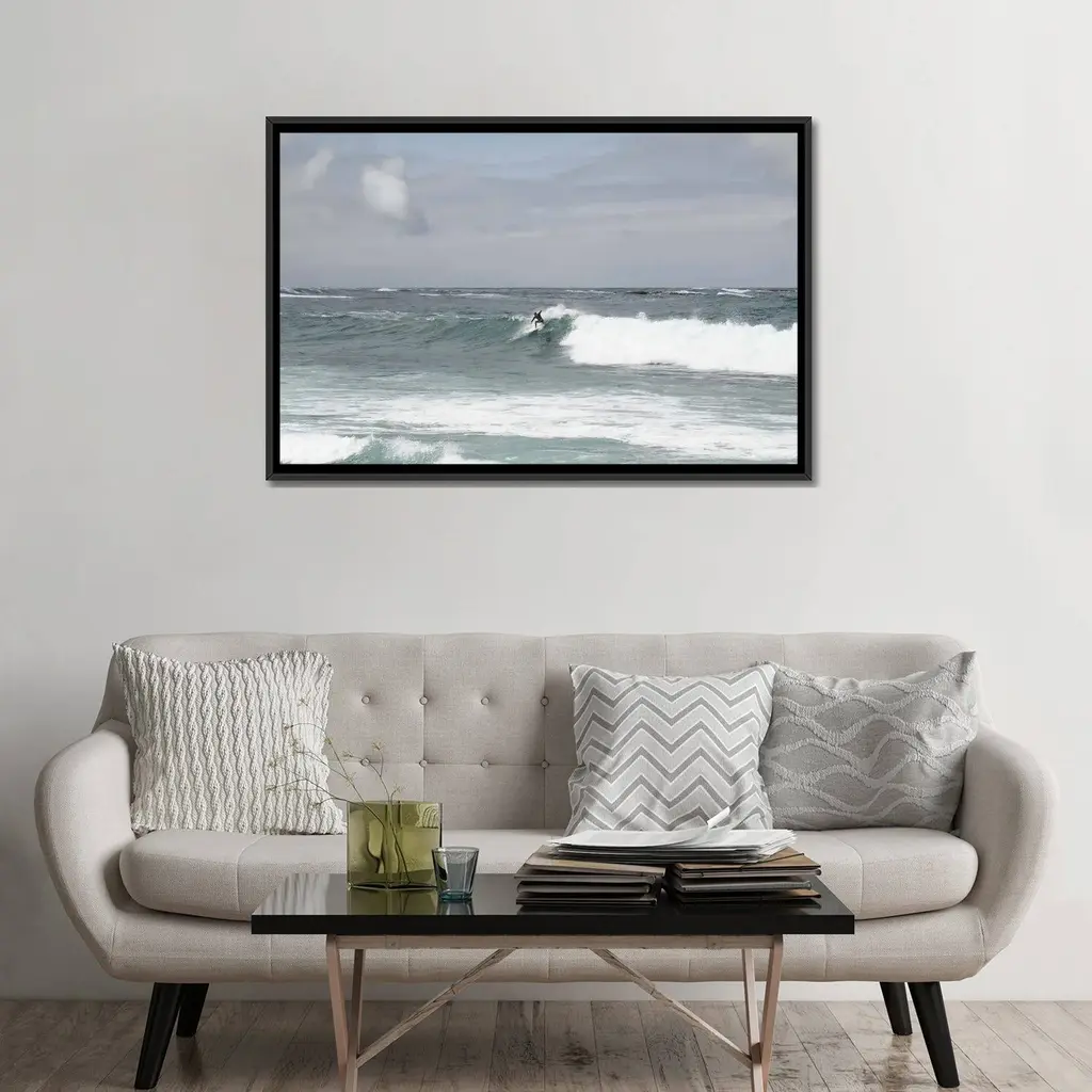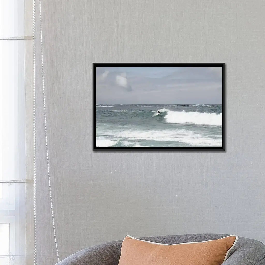 Icanvas "Surfer Riding The Wave I" By Anita's & Bella's Art Framed - White - 32x48
