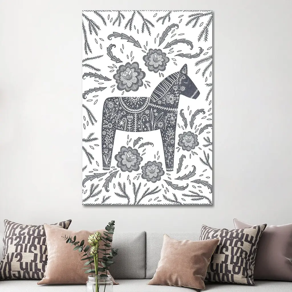Icanvas "Swedish Grey Dala Horse" By Nic Squirrell Canvas Print - 40x26x1.5