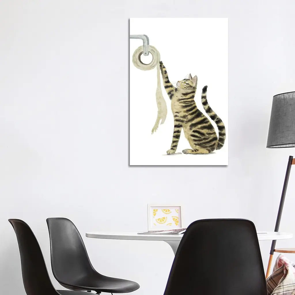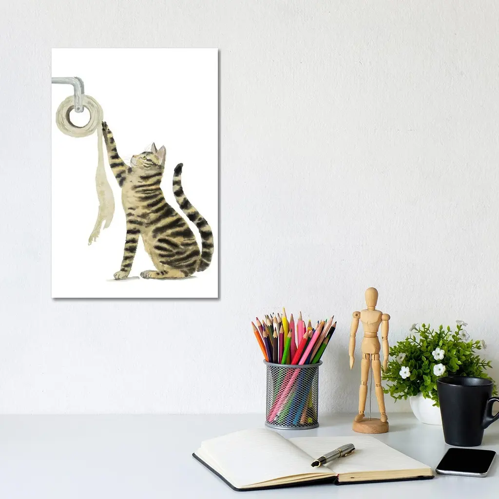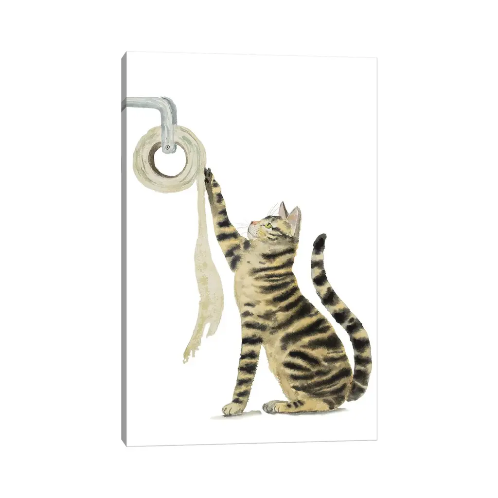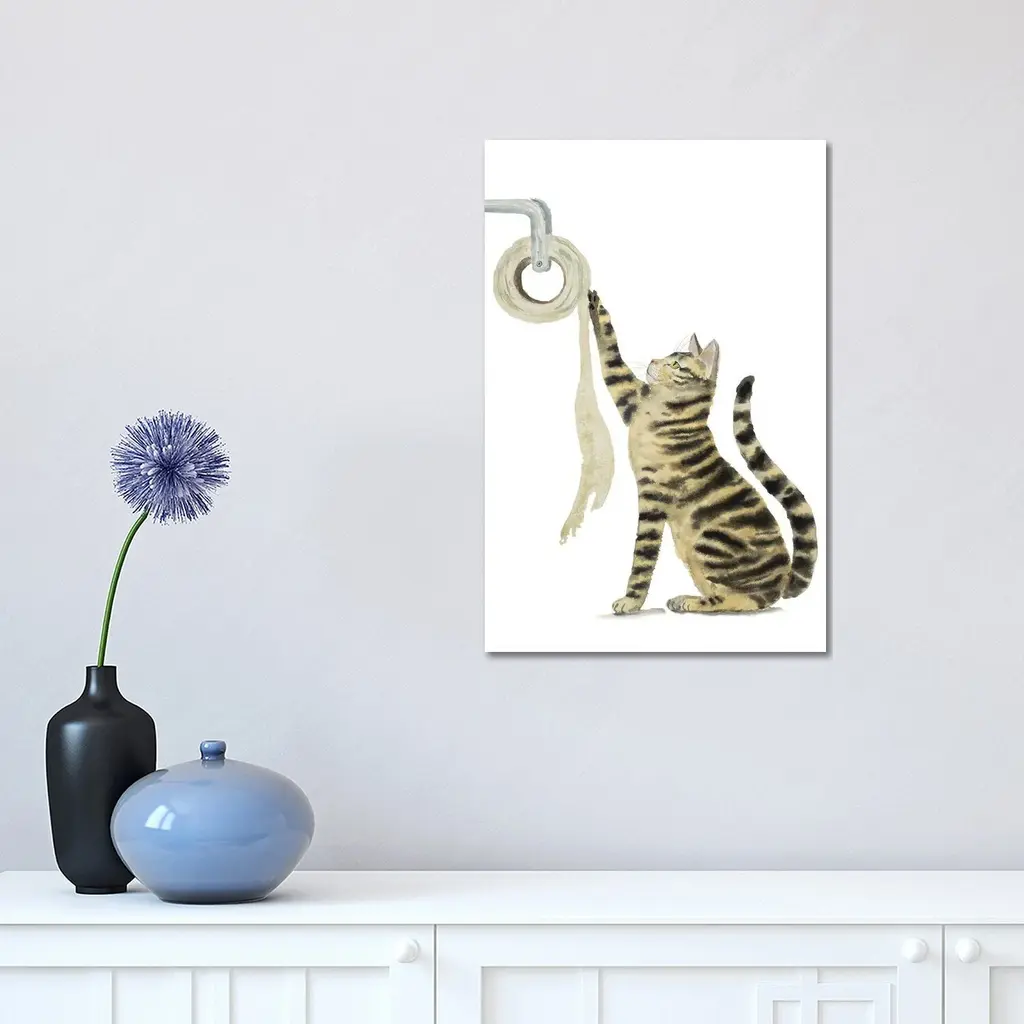 Icanvas "Tabby Cat And Toilet Paper" By Alexey Dmitrievich Shmyrov Canvas Print - 12x8x0.75