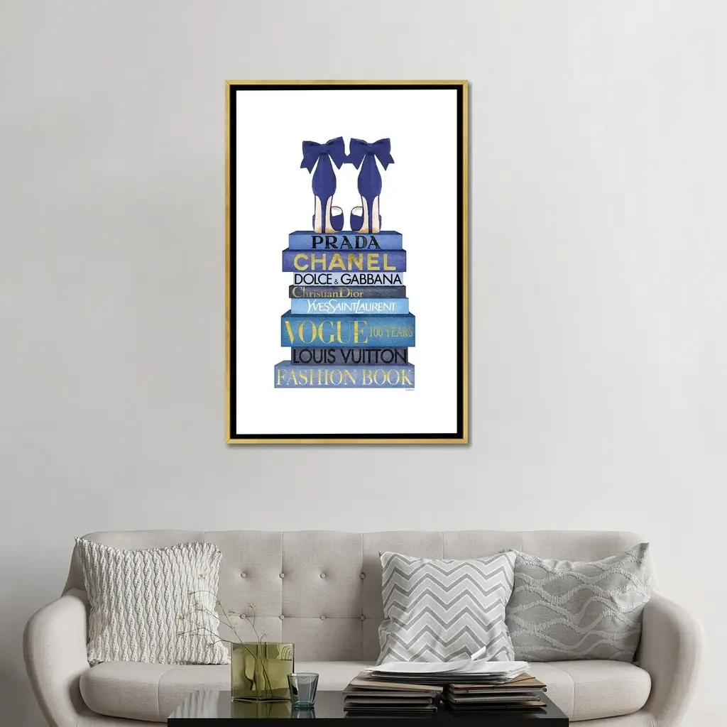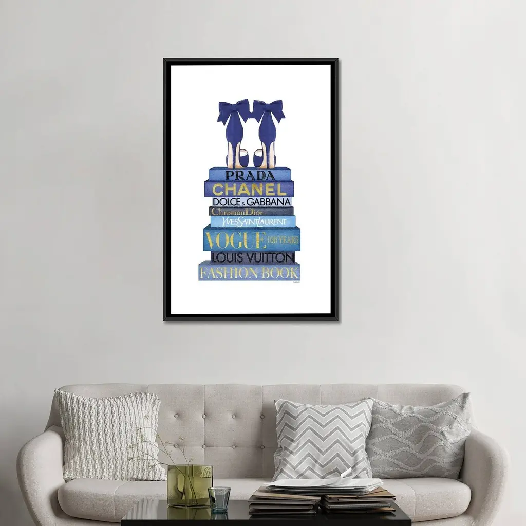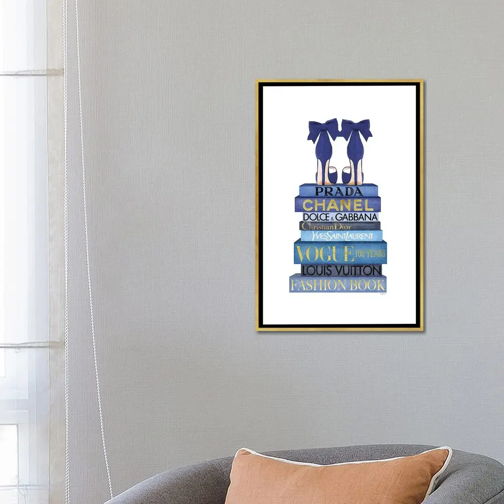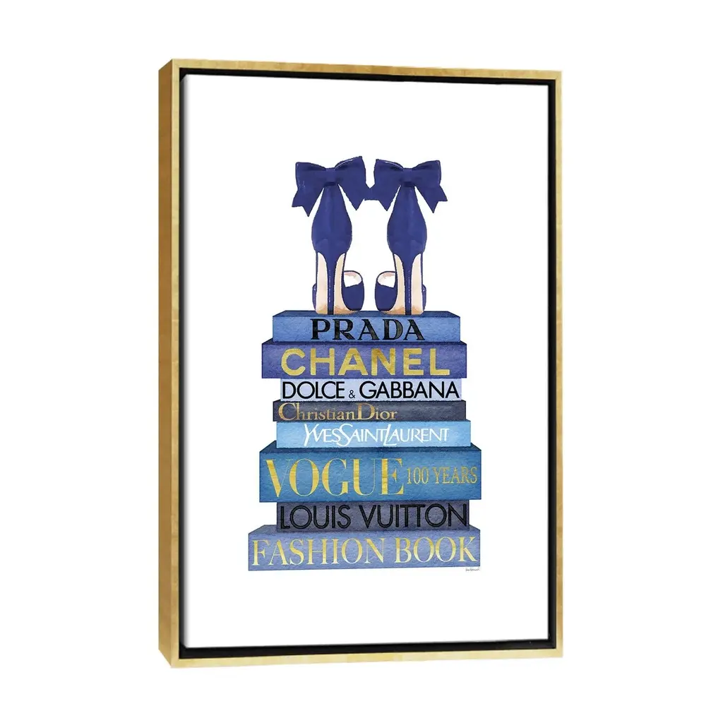 Icanvas "Tall Blue Books, Blue Shoes" By Amanda Greenwood Framed Canvas Print - Black - 26x18