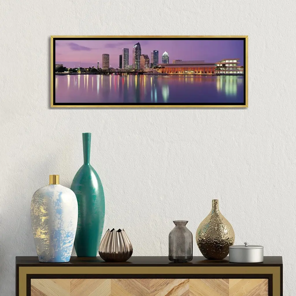 Icanvas "Tampa Panoramic Skyline Cityscape (Dusk)" By Unknown Artist Framed Canvas Print - 12x36 - Gold
