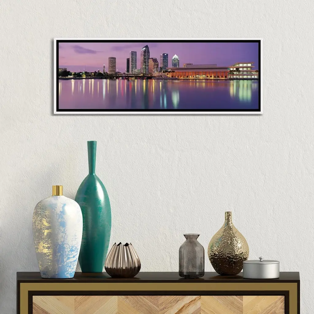 Icanvas "Tampa Panoramic Skyline Cityscape (Dusk)" By Unknown Artist Framed Canvas Print - 12x36 - White